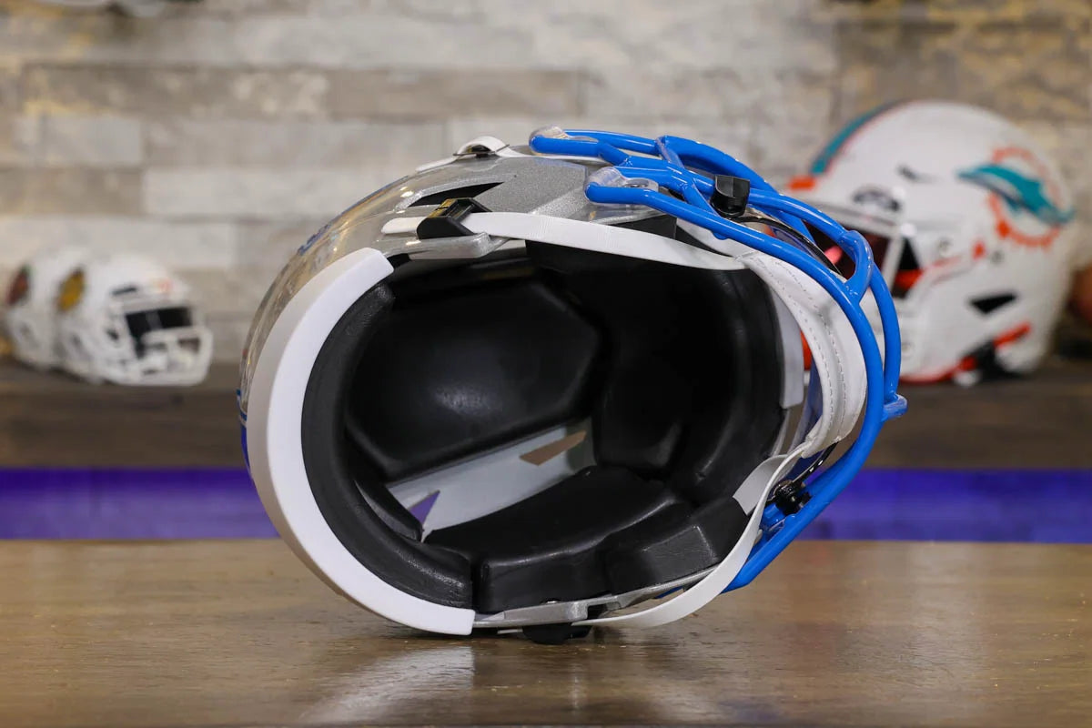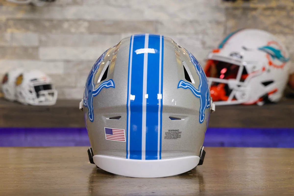 Detroit Lions SpeedFlex Mid-Size Football Helmet – A must-have collectible for Lions fans and autograph seekers. This officially licensed mid-size helmet features the iconic SpeedFlex shell, SF-2BD-SW face mask, authentic team decals, internal padding, soft-cup chinstrap, and a clear visor. Sized between a replica and a mini helmet, it’s ideal for display, signing events, or gifting. Affordable, detailed, and game-inspired—perfect for any fan cave or collection.