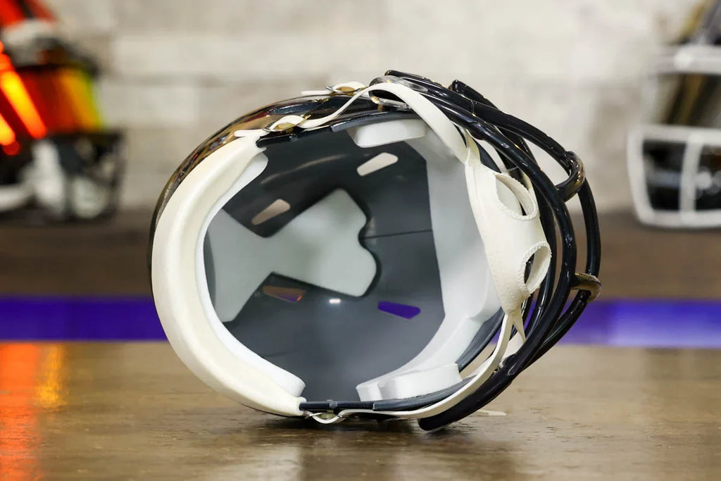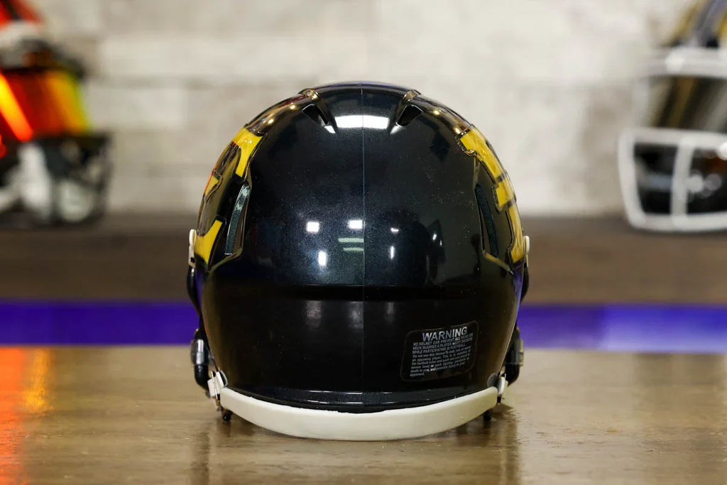 The Riddell Speed Mini Helmets are an easy and affordable way to join the collectors club and they make a perfect gift that everyone loves without breaking the bank! Riddell mini helmets are about half the size of the Authentic and Replica helmets. They model the official team designs and colors on a smaller scale. Coming in at about 6” tall, you can collect all your teams’ mini’s without taking up much room. Put them on your desk, a shelf, your dashboard, or get a Mini Helmet Hanger and put them on the wall!