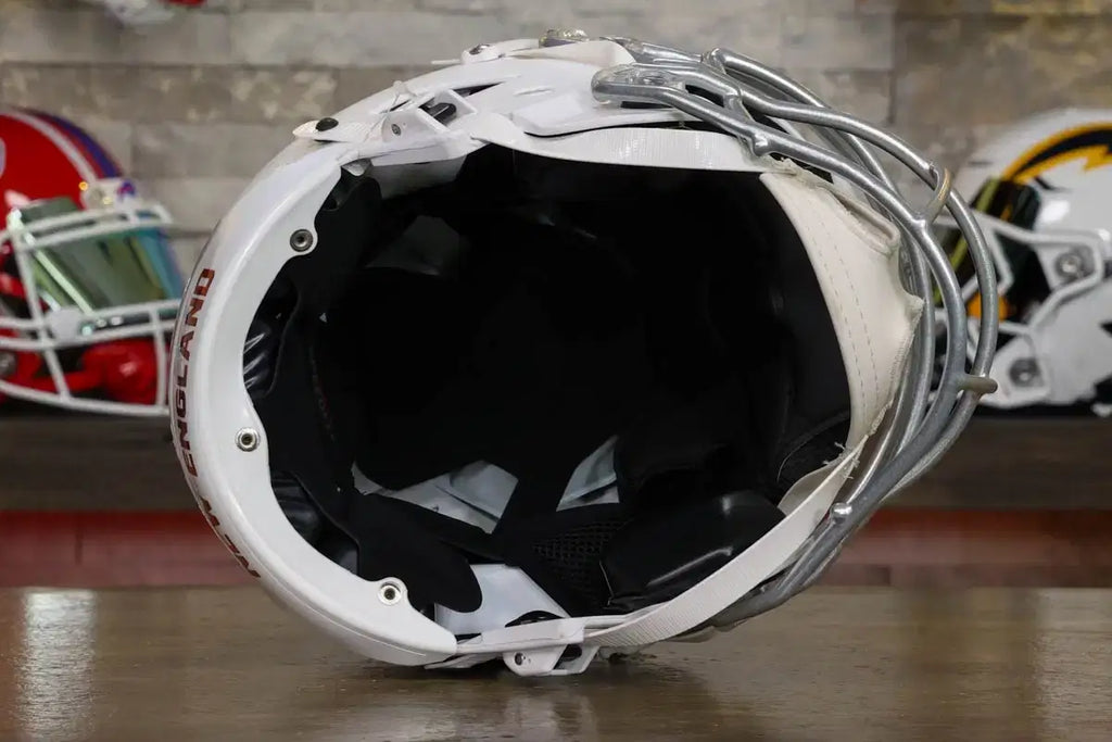 The Riddell SpeedFlex Helmet is one of the most popular and iconic styles in history and one of the most sought after by players and collectors! These officially licensed helmets are perfect for display, collecting autographs, and showing off your team spirit. We recommend your helmet be displayed prominently on a shelf or on the wall with a Helmet Hanger, the same way we and many teams do! Available in any of the same 35+ colors we offer for facemasks, each hanger is coated to order.