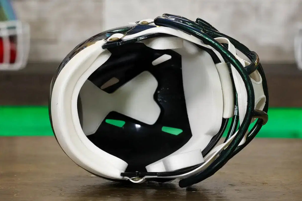 The Riddell Speed Mini Helmets are an easy and affordable way to join the collectors club and they make a perfect gift that everyone loves without breaking the bank! Riddell mini helmets are about half the size of the Authentic and Replica helmets. They model the official team designs and colors on a smaller scale. Coming in at about 6” tall, you can collect all your teams’ mini’s without taking up much room. Put them on your desk, a shelf, your dashboard, or get a Mini Helmet Hanger and put them on the wall!