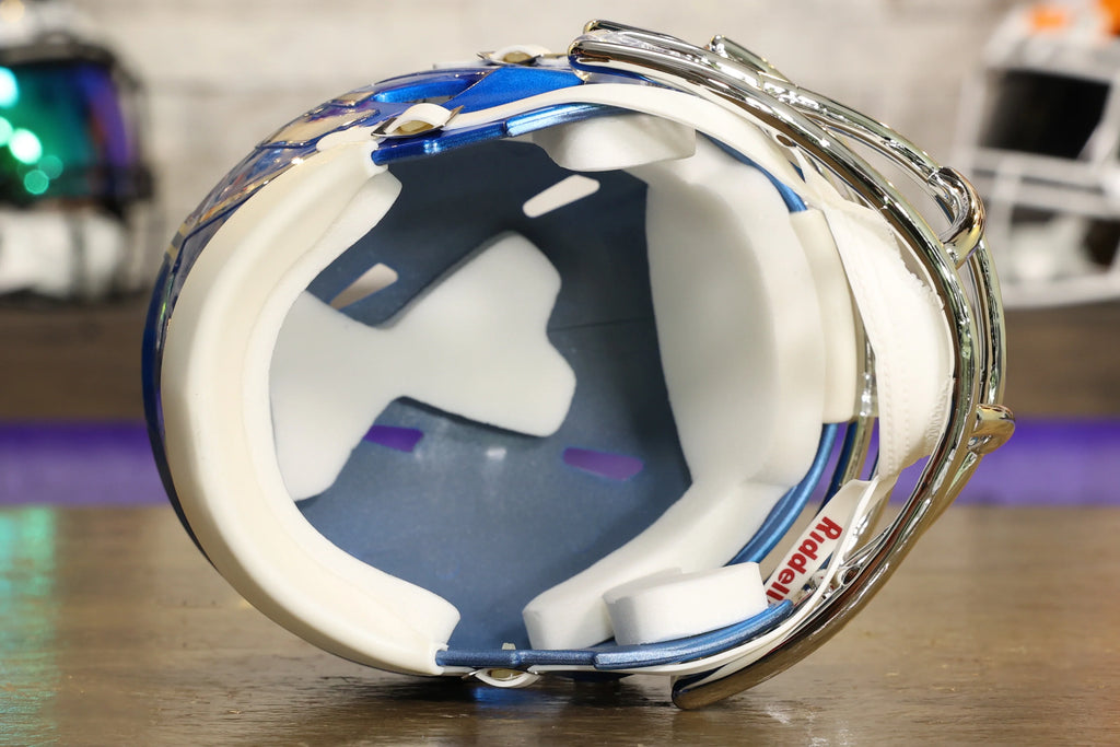 The Riddell Speed Mini Helmets are an easy and affordable way to join the collectors club and they make a perfect gift that everyone loves without breaking the bank! Riddell mini helmets are about half the size of the Authentic and Replica helmets. They model the official team designs and colors on a smaller scale. Coming in at about 6” tall, you can collect all your teams’ mini’s without taking up much room. Put them on your desk, a shelf, your dashboard, or get a Mini Helmet Hanger and put them on the wall!