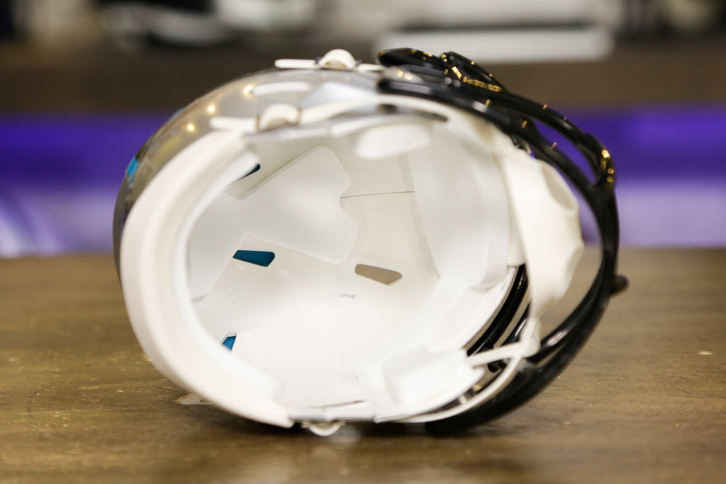 The Riddell Speed Mini Helmets are an easy and affordable way to join the collectors club and they make a perfect gift that everyone loves without breaking the bank! Riddell mini helmets are about half the size of the Authentic and Replica helmets. They model the official team designs and colors on a smaller scale. Coming in at about 6” tall, you can collect all your teams’ mini’s without taking up much room. Put them on your desk, a shelf, your dashboard, or get a Mini Helmet Hanger and put them on the wall!
