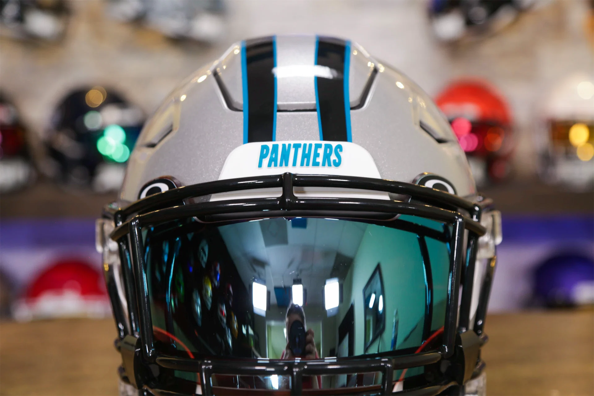 This Carolina Panthers Helmet is a Green Gridiron masterpiece, ready for the biggest Panthers fan!