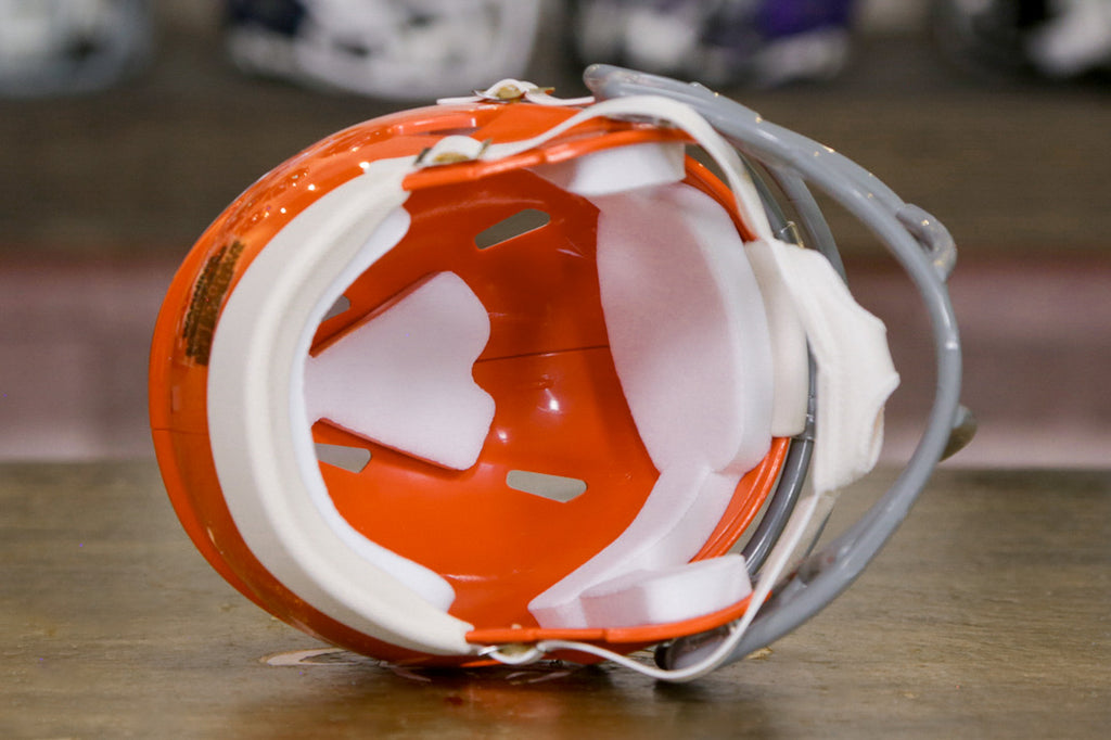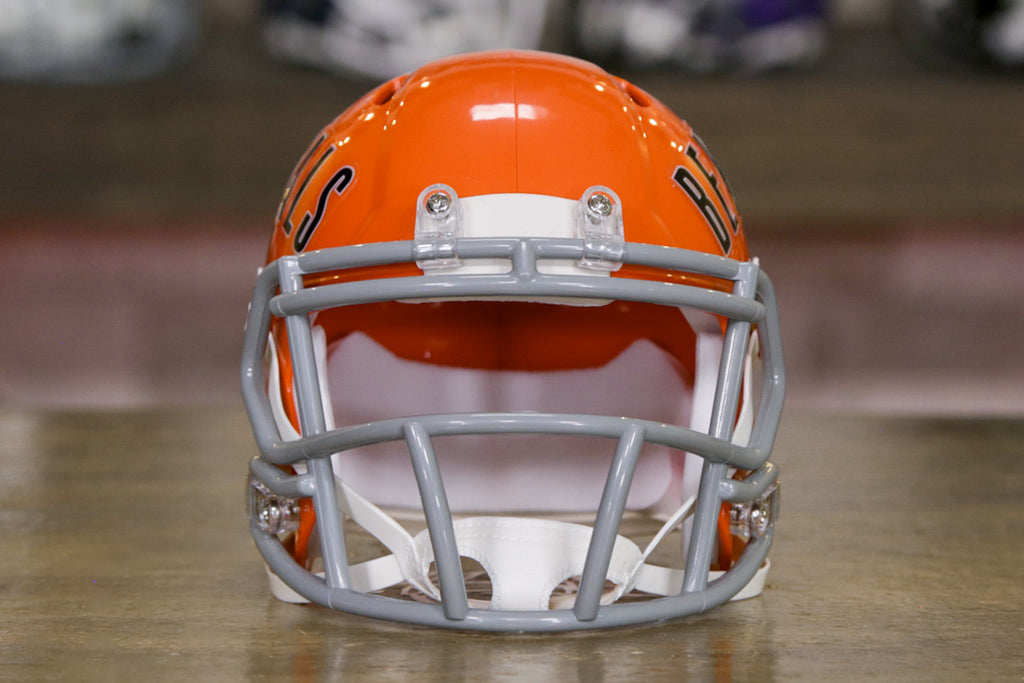 The Riddell Speed Mini Helmets are an easy and affordable way to join the collectors club and they make a perfect gift that everyone loves without breaking the bank! Riddell mini helmets are about half the size of the Authentic and Replica helmets. They model the official team designs and colors on a smaller scale. Coming in at about 6” tall, you can collect all your teams’ mini’s without taking up much room. Put them on your desk, a shelf, your dashboard, or get a Mini Helmet Hanger and put them on the wall!