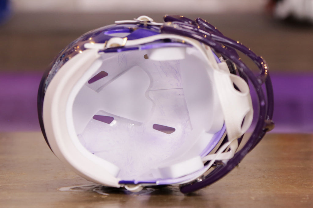 The Riddell Speed Mini Helmets are an easy and affordable way to join the collectors club and they make a perfect gift that everyone loves without breaking the bank! Riddell mini helmets are about half the size of the Authentic and Replica helmets. They model the official team designs and colors on a smaller scale. Coming in at about 6” tall, you can collect all your teams’ mini’s without taking up much room. Put them on your desk, a shelf, your dashboard, or get a Mini Helmet Hanger and put them on the wall!