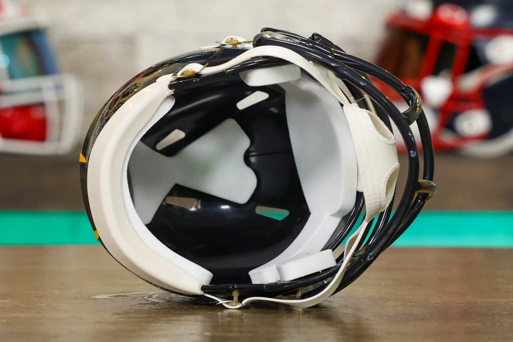 The Riddell Speed Mini Helmets are an easy and affordable way to join the collectors club and they make a perfect gift that everyone loves without breaking the bank! Riddell mini helmets are about half the size of the Authentic and Replica helmets. They model the official team designs and colors on a smaller scale. Coming in at about 6” tall, you can collect all your teams’ mini’s without taking up much room. Put them on your desk, a shelf, your dashboard, or get a Mini Helmet Hanger and put them on the wall!