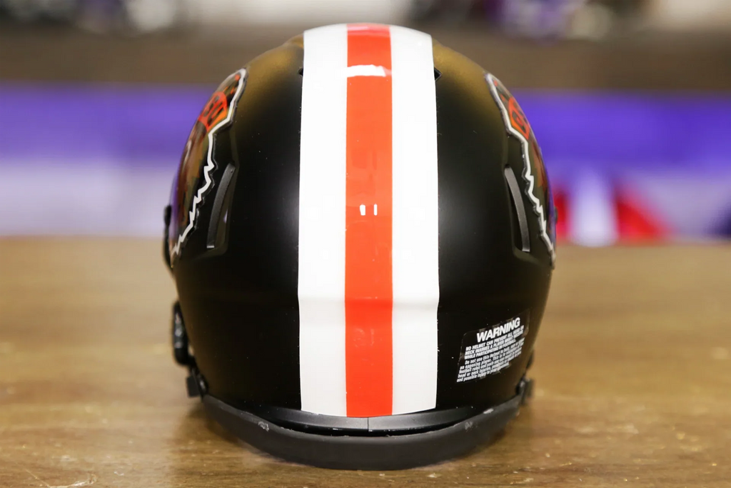 The Riddell Speed Mini Helmets are an easy and affordable way to join the collectors club and they make a perfect gift that everyone loves without breaking the bank! Riddell mini helmets are about half the size of the Authentic and Replica helmets. They model the official team designs and colors on a smaller scale. Coming in at about 6” tall, you can collect all your teams’ mini’s without taking up much room. Put them on your desk, a shelf, your dashboard, or get a Mini Helmet Hanger and put them on the wall!