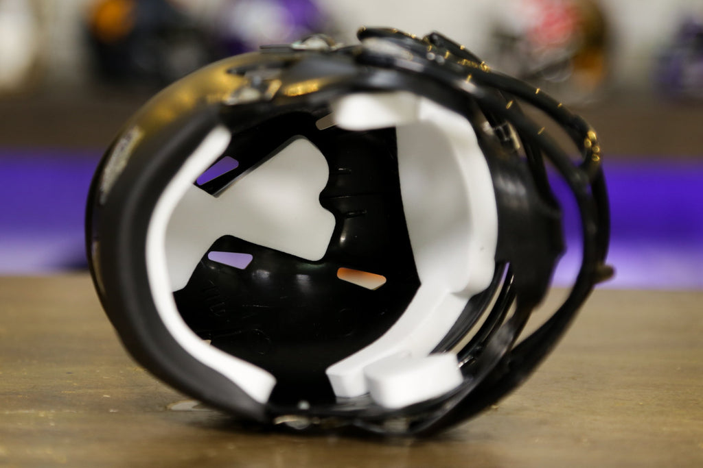 The Riddell Speed Mini Helmets are an easy and affordable way to join the collectors club and they make a perfect gift that everyone loves without breaking the bank! Riddell mini helmets are about half the size of the Authentic and Replica helmets. They model the official team designs and colors on a smaller scale. Coming in at about 6” tall, you can collect all your teams’ mini’s without taking up much room. Put them on your desk, a shelf, your dashboard, or get a Mini Helmet Hanger and put them on the wall!