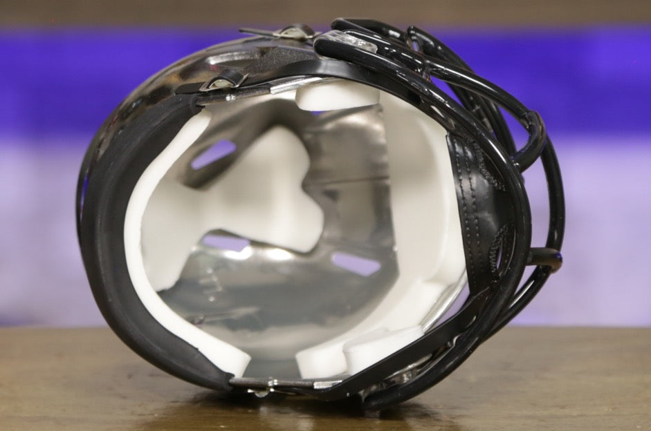 The Riddell Speed Mini Helmets are an easy and affordable way to join the collectors club and they make a perfect gift that everyone loves without breaking the bank! Riddell mini helmets are about half the size of the Authentic and Replica helmets. They model the official team designs and colors on a smaller scale. Coming in at about 6” tall, you can collect all your teams’ mini’s without taking up much room. Put them on your desk, a shelf, your dashboard, or get a Mini Helmet Hanger and put them on the wall!