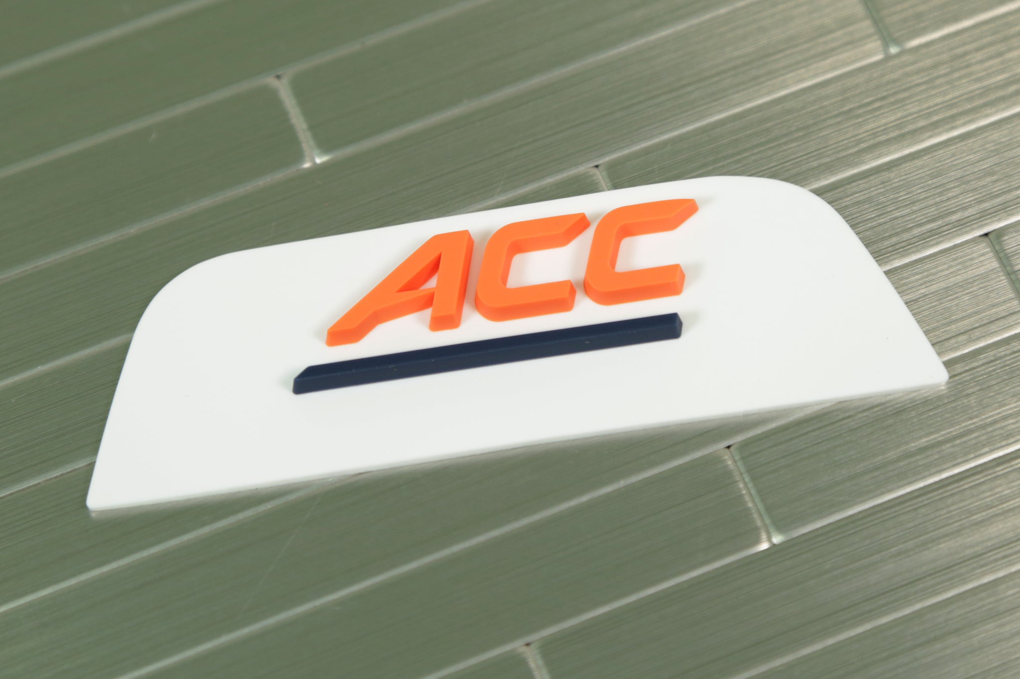 Officially licensed ACC 3D Bumper for Virginia Cavalierscollectible football helmets. Each ACC teams uses ACC front 3D Bumpers in their unique color combination.