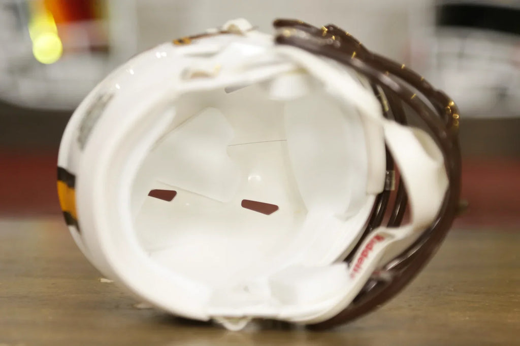 The Riddell Speed Mini Helmets are an easy and affordable way to join the collectors club and they make a perfect gift that everyone loves without breaking the bank! Riddell mini helmets are about half the size of the Authentic and Replica helmets. They model the official team designs and colors on a smaller scale. Coming in at about 6” tall, you can collect all your teams’ mini’s without taking up much room. Put them on your desk, a shelf, your dashboard, or get a Mini Helmet Hanger and put them on the wall!