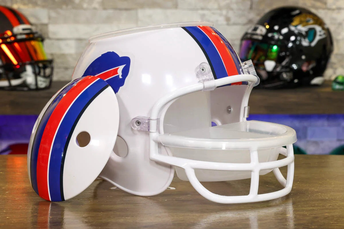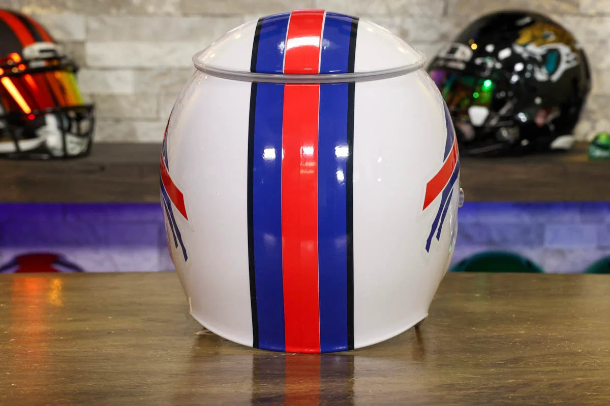 You love hosting tailgate and homegate parties for all the big games. No party is fully complete without some delicious snacks. Now, you can pay homage to your beloved team while showcasing some tasty treats with this Party snack helmet. It'll make your steadfast loyalty abundantly clear with the crisp team graphics. Snack helmets have a large container in the helmet and a smaller tray with two compartments in the facemask (Football) or one smaller tray with no divider (Racing). Helmets are approximately 10" high x 9.25" wide x 12" deep. The container and tray are microwavable and dishwasher safe. Made in the USA. Officially licensed.
