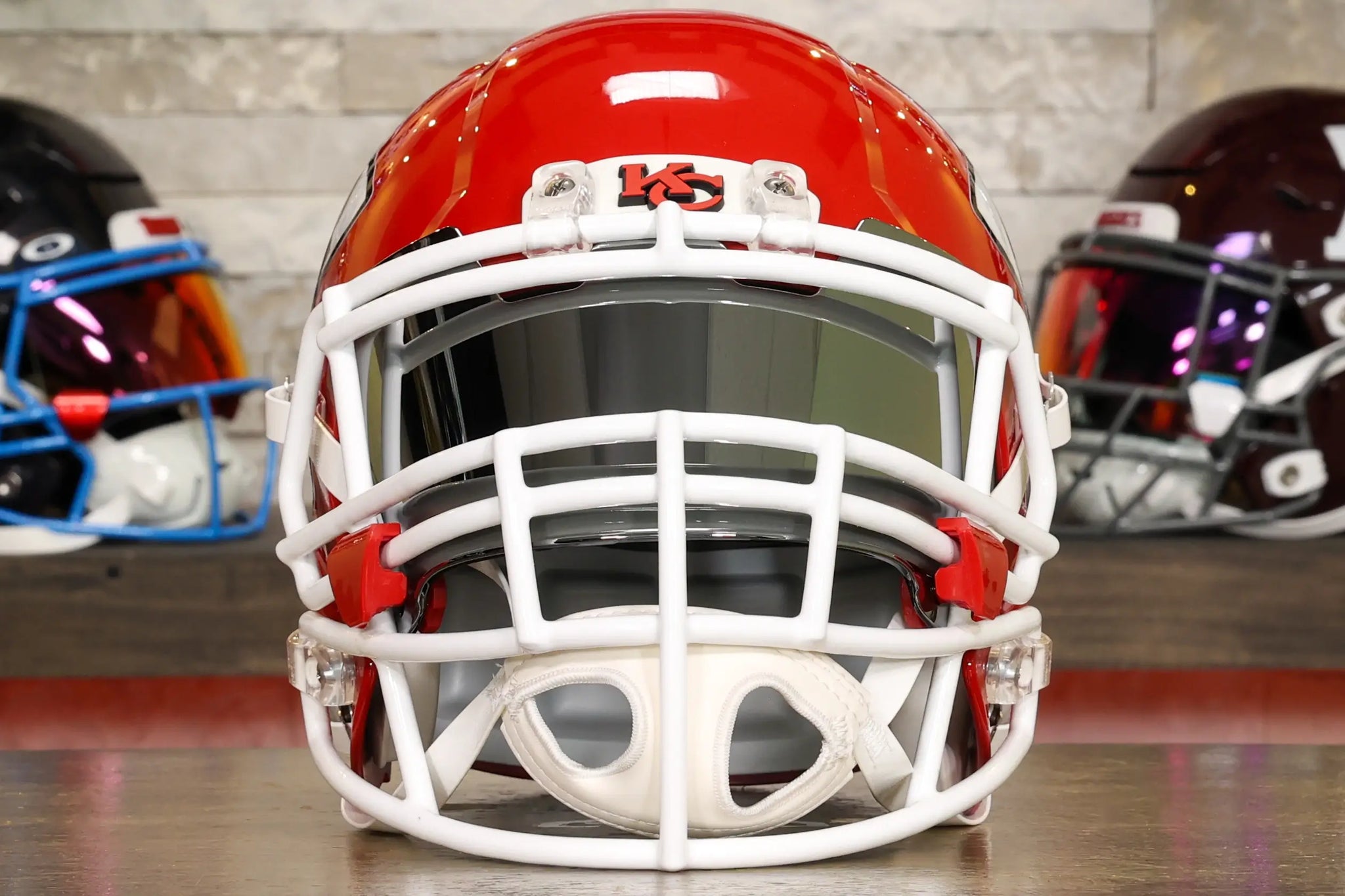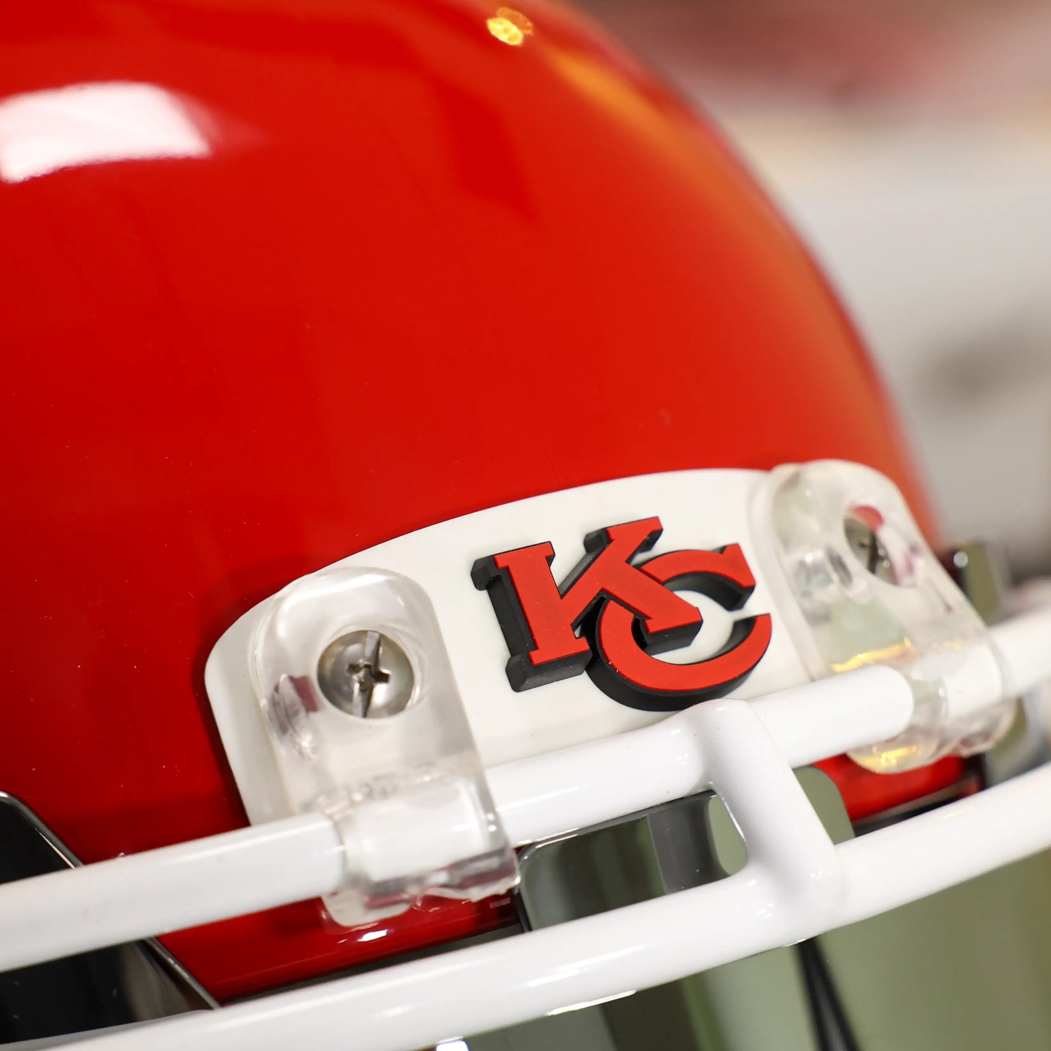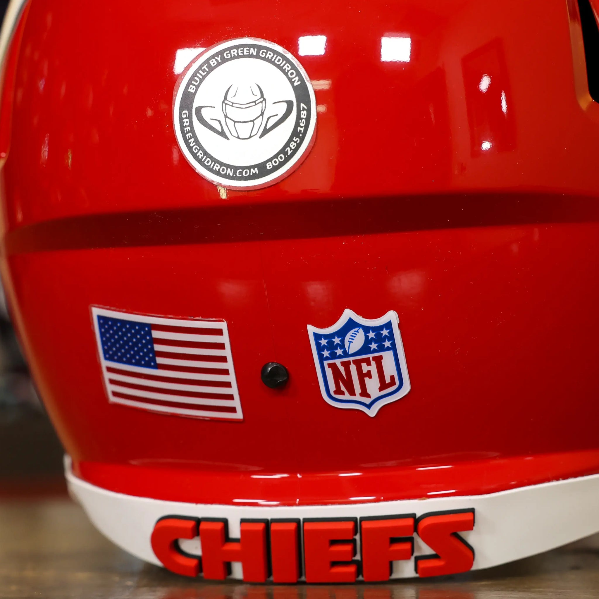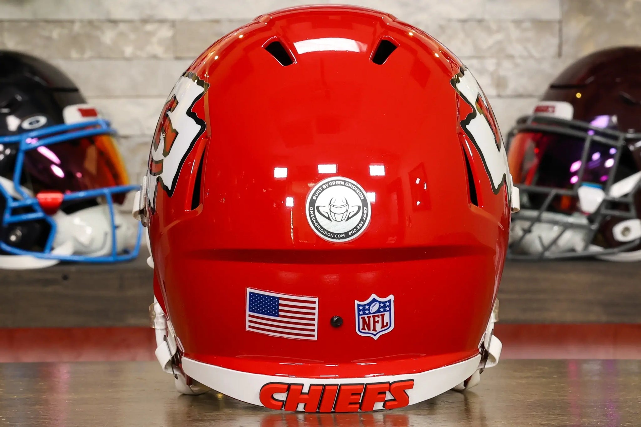 This Kansas City Chiefs Helmet is a Green Gridiron masterpiece, ready for the biggest Chiefs fan!