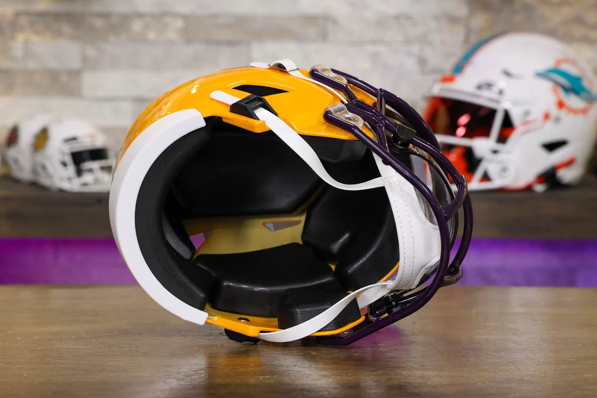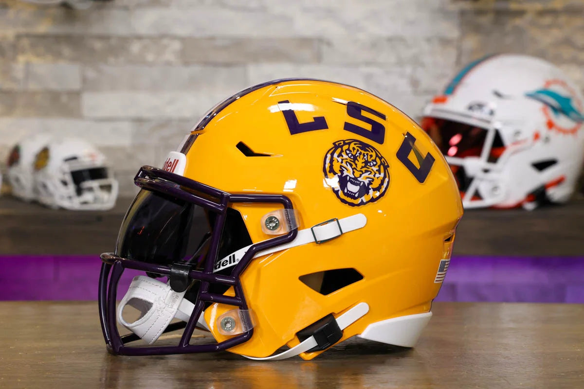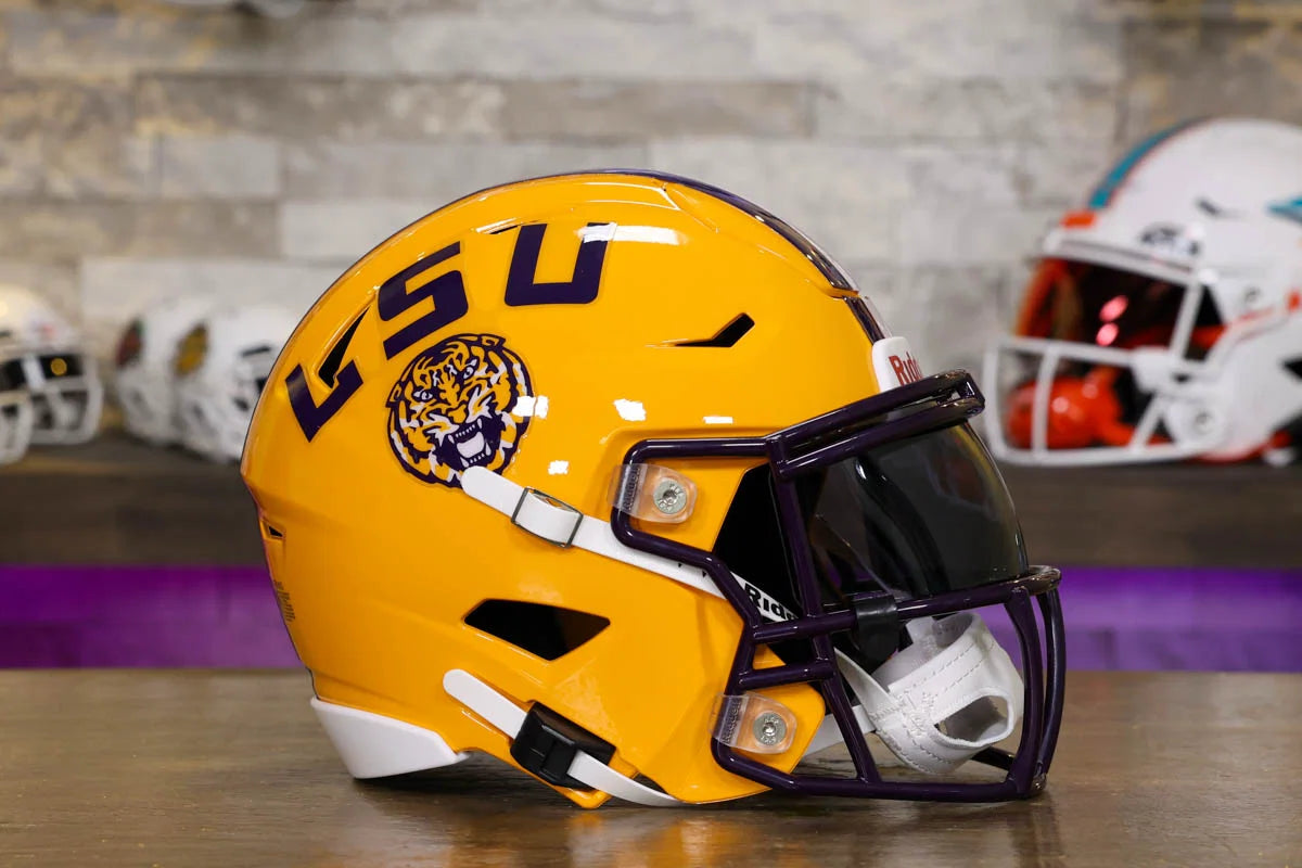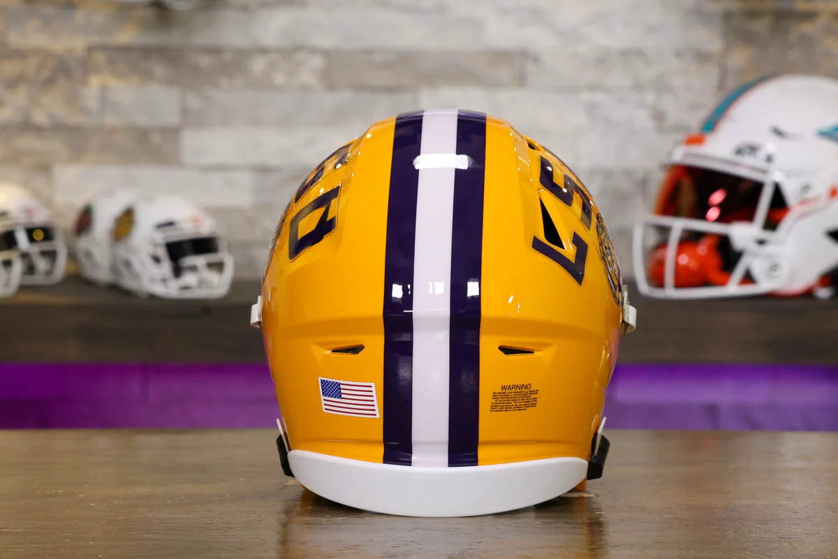LSU Tigers SpeedFlex Mid-Size Football Helmet – A must-have collectible for Tigers fans and autograph seekers. This officially licensed mid-size helmet features the iconic SpeedFlex shell, SF-2BD-SW face mask, authentic team decals, internal padding, soft-cup chinstrap, and a clear visor. Sized between a replica and a mini helmet, it’s ideal for display, signing events, or gifting. Affordable, detailed, and game-inspired—perfect for any fan cave or collection.