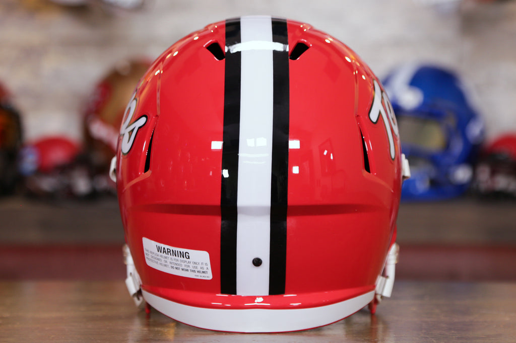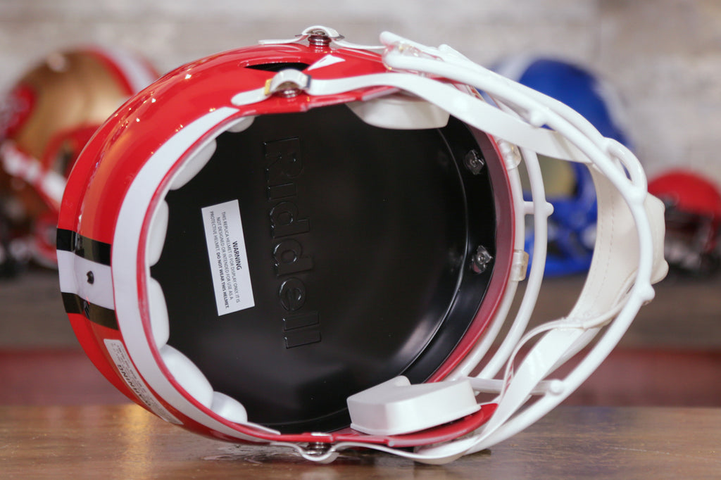 The Riddell Speed helmet is one of the most popular and iconic styles in history and one of the most sought after by collectors! These officially licensed helmets are perfect for display, collecting autographs, and showing off your team spirit. We recommend your helmet be displayed prominently on a shelf or on the wall with a Helmet Hanger, the same way we and many teams do! Available in any of the same 35+ colors we offer for facemasks, each hanger is coated to order.
