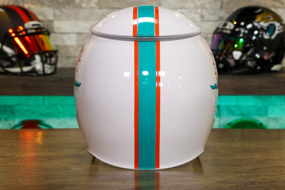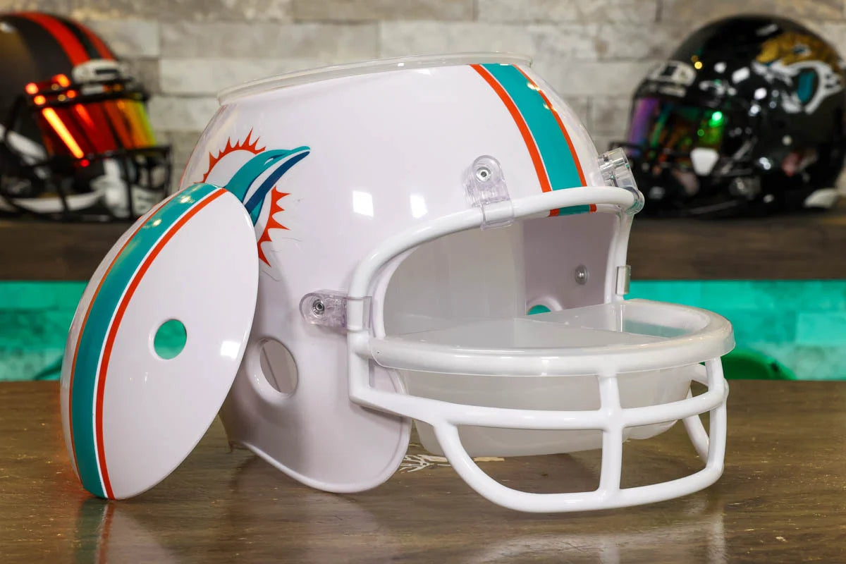 You love hosting tailgate and homegate parties for all the big games. No party is fully complete without some delicious snacks. Now, you can pay homage to your beloved team while showcasing some tasty treats with this Party snack helmet. It'll make your steadfast loyalty abundantly clear with the crisp team graphics. Snack helmets have a large container in the helmet and a smaller tray with two compartments in the facemask (Football) or one smaller tray with no divider (Racing). Helmets are approximately 10" high x 9.25" wide x 12" deep. The container and tray are microwavable and dishwasher safe. Made in the USA. Officially licensed.