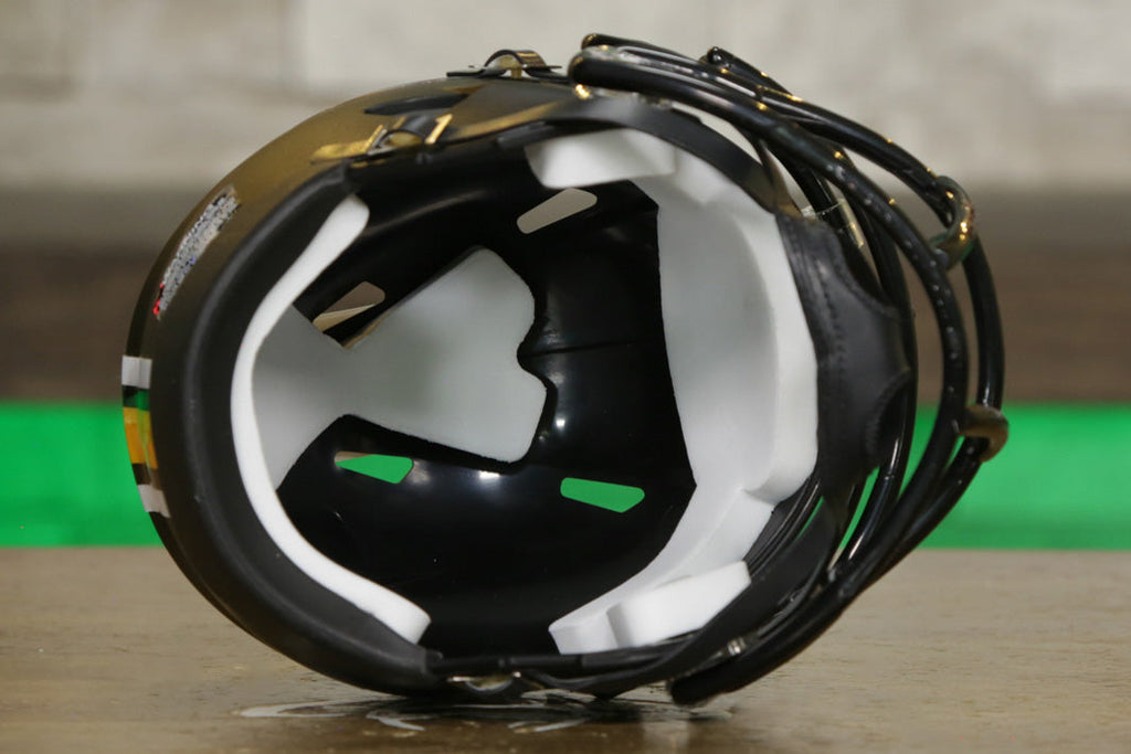 The Riddell Speed Mini Helmets are an easy and affordable way to join the collectors club and they make a perfect gift that everyone loves without breaking the bank! Riddell mini helmets are about half the size of the Authentic and Replica helmets. They model the official team designs and colors on a smaller scale. Coming in at about 6” tall, you can collect all your teams’ mini’s without taking up much room. Put them on your desk, a shelf, your dashboard, or get a Mini Helmet Hanger and put them on the wall!