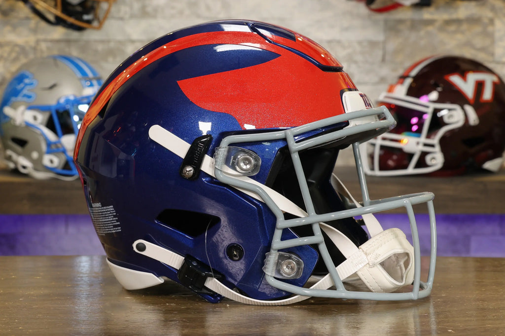 The Riddell SpeedFlex Helmet is one of the most popular and iconic styles in history and one of the most sought after by players and collectors! These officially licensed helmets are perfect for display, collecting autographs, and showing off your team spirit. We recommend your helmet be displayed prominently on a shelf or on the wall with a Helmet Hanger, the same way we and many teams do! Available in any of the same 35+ colors we offer for facemasks, each hanger is coated to order.