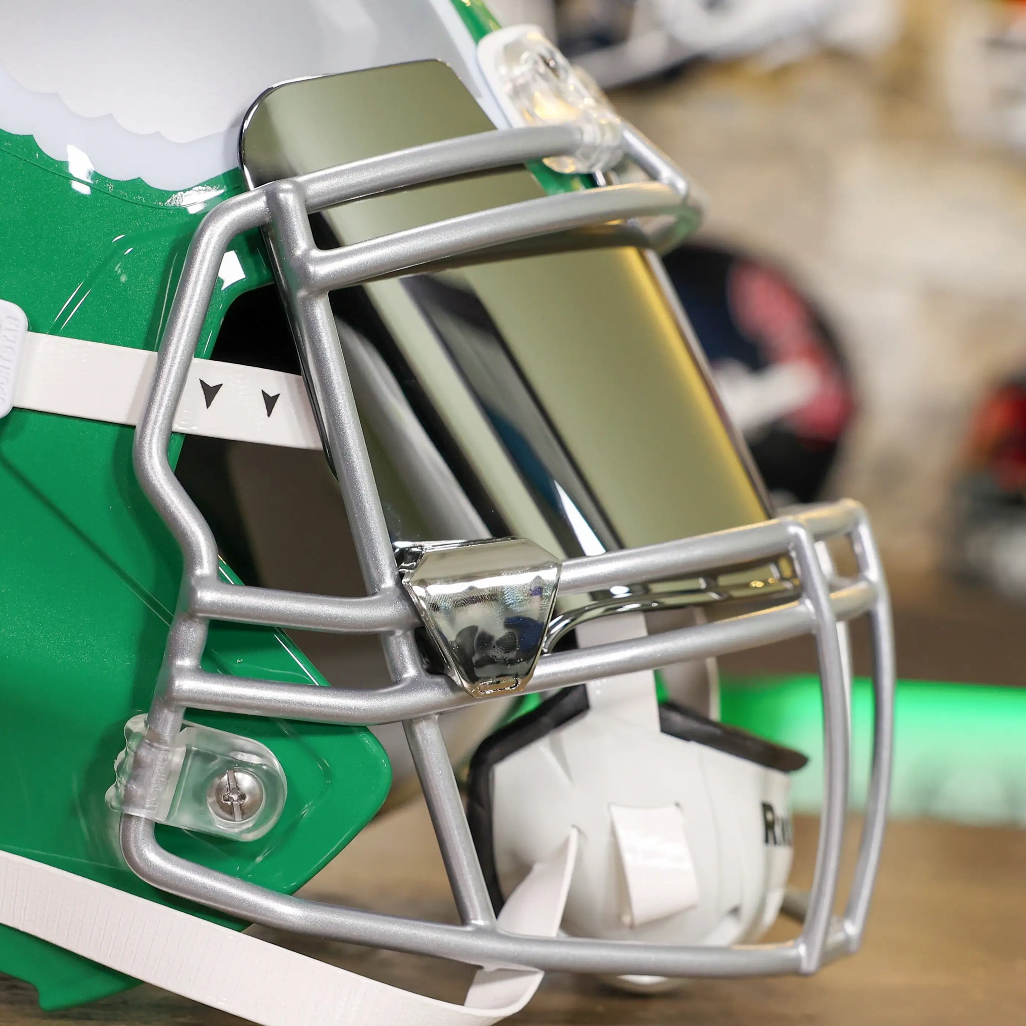 Green Gridiron Edition Custom Helmets are builds made by our GG team. Their vision is brought to life, beautifully designed, and carefully assembled. This helmet is sold in its present condition, parts cannot be exchanged, added or removed. If you want a different upgrade, you must purchase it separately. If you do not want any of the components included in this build, the price will not lower and the piece(s) will not be removed. This helmet is sold as is. If you want a premium upgraded helmet without putting in the work yourself, trust the brainpower of Green Gridiron and take home a ready-made, custom helmet!