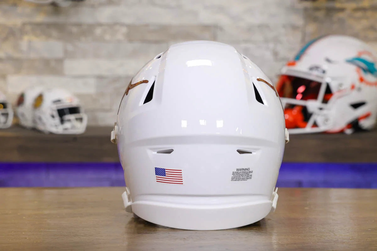 Texas Longhorns SpeedFlex Mid-Size Football Helmet – A must-have collectible for Longhorns fans and autograph seekers. This officially licensed mid-size helmet features the iconic SpeedFlex shell, SF-2BD-SW face mask, authentic team decals, internal padding, soft-cup chinstrap, and a clear visor. Sized between a replica and a mini helmet, it’s ideal for display, signing events, or gifting. Affordable, detailed, and game-inspired—perfect for any fan cave or collection.