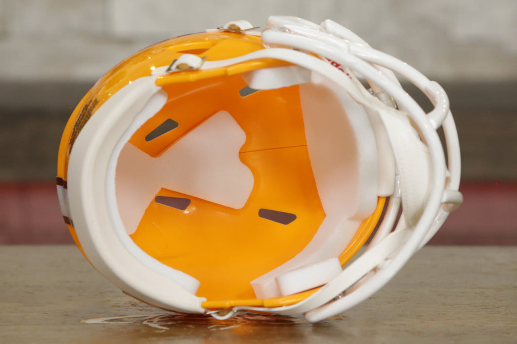 The Riddell Speed Mini Helmets are an easy and affordable way to join the collectors club and they make a perfect gift that everyone loves without breaking the bank! Riddell mini helmets are about half the size of the Authentic and Replica helmets. They model the official team designs and colors on a smaller scale. Coming in at about 6” tall, you can collect all your teams’ mini’s without taking up much room. Put them on your desk, a shelf, your dashboard, or get a Mini Helmet Hanger and put them on the wall!