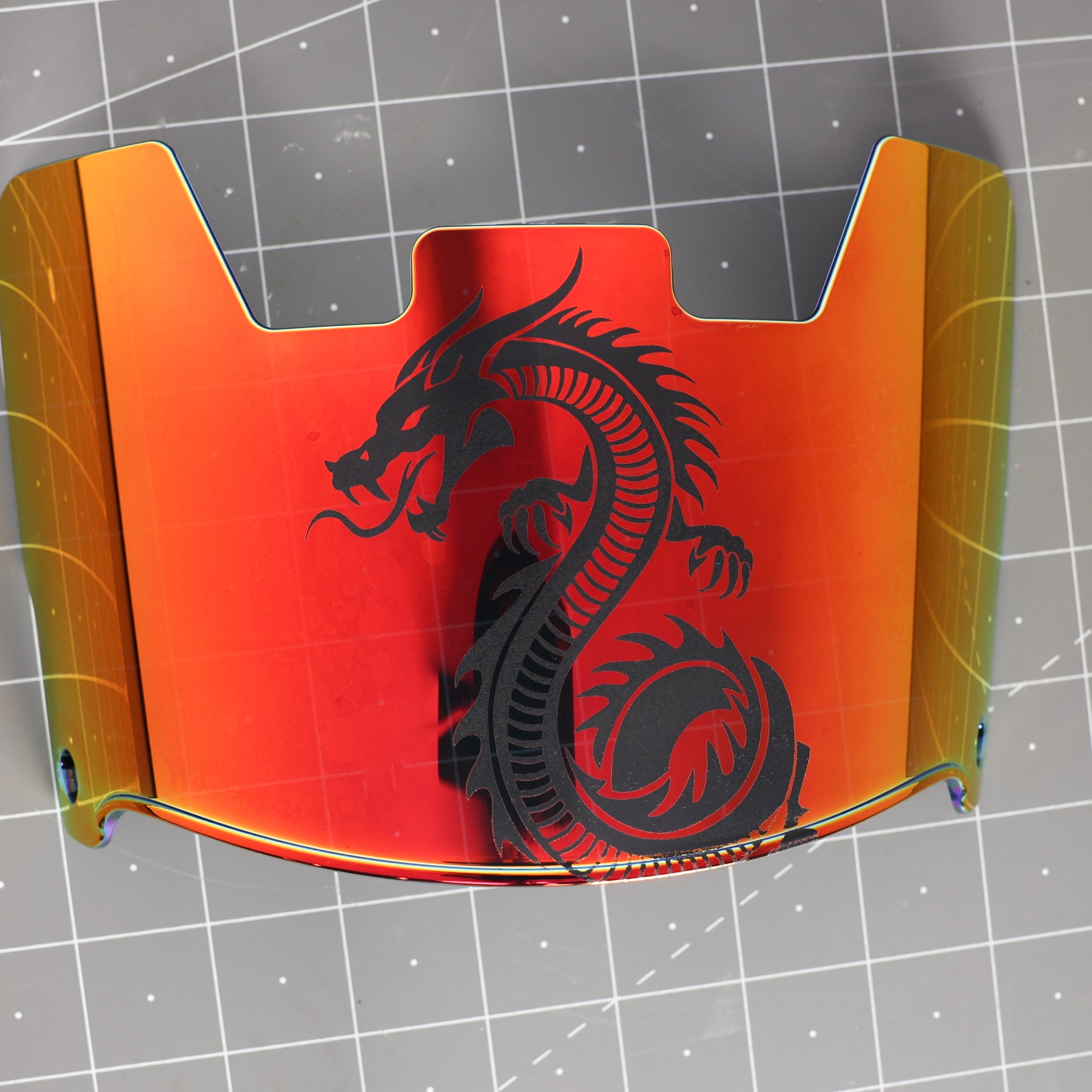 Break out of the ordinary with these Designer Etched Visors! Show off a fun design that reflects your team or personality and make a statement. These visors are great for photoshoots, recruiting, and for display helmets. Visors provide a universal fit on most facemasks and helmet combinations.