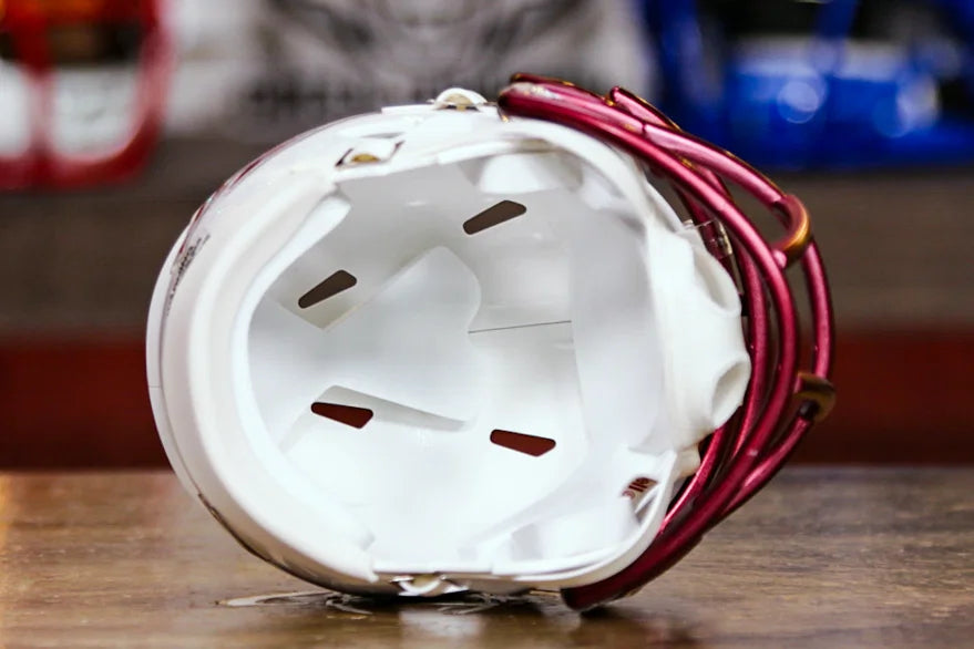 The Riddell Speed Mini Helmets are an easy and affordable way to join the collectors club and they make a perfect gift that everyone loves without breaking the bank! Riddell mini helmets are about half the size of the Authentic and Replica helmets. They model the official team designs and colors on a smaller scale. Coming in at about 6” tall, you can collect all your teams’ mini’s without taking up much room. Put them on your desk, a shelf, your dashboard, or get a Mini Helmet Hanger and put them on the wall!