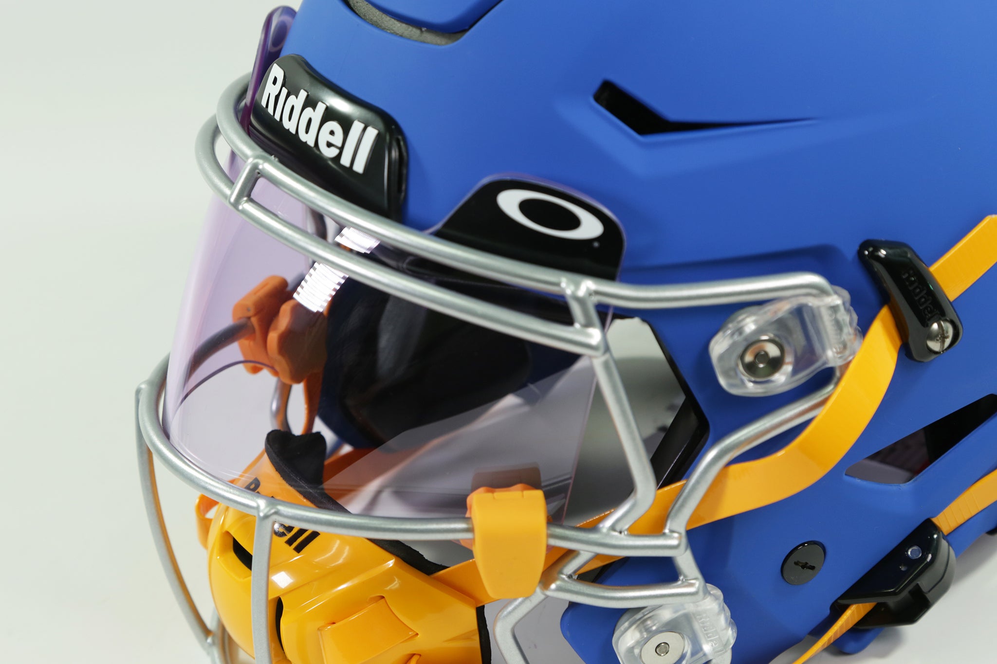 The Oakley Pro Visor is here! This Oakley Pro Visor allows for 89% of Visible Light Transmitted (VLT) and is best for overcast and low light conditions. All Oakley Pro Eye Sheilds are compatible with the Riddell SpeedFlex Helmet.
