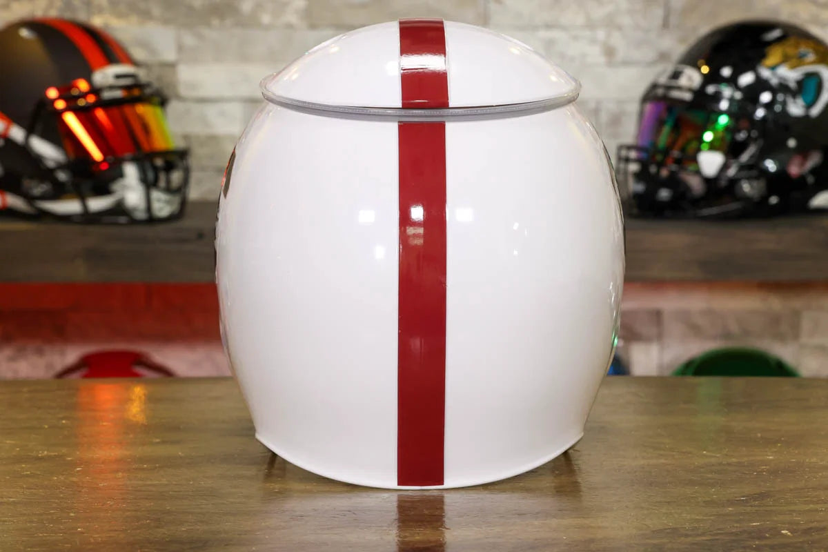 You love hosting tailgate and homegate parties for all the big games. No party is fully complete without some delicious snacks. Now, you can pay homage to your beloved team while showcasing some tasty treats with this Party snack helmet. It'll make your steadfast loyalty abundantly clear with the crisp team graphics. Snack helmets have a large container in the helmet and a smaller tray with two compartments in the facemask (Football) or one smaller tray with no divider (Racing). Helmets are approximately 10" high x 9.25" wide x 12" deep. The container and tray are microwavable and dishwasher safe. Made in the USA. Officially licensed.