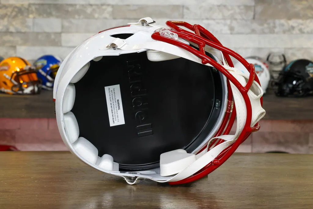 WHAT YOU GET: Since its introduction, the Riddell Speed was a top choice for players at all levels. With never before seen aggressive lines, comfortable fit, and a plethora of upgrades, the Riddell Speed remains one of the most popular helmets with players and collectors alike. At approximately 11” tall, this officially licensed display helmet is perfect for all football fans and great for autographs. Only available in size large, it comes with the popular S2BD-SW-SP facemask, 4-point soft chinstrap, and official paint and decals.