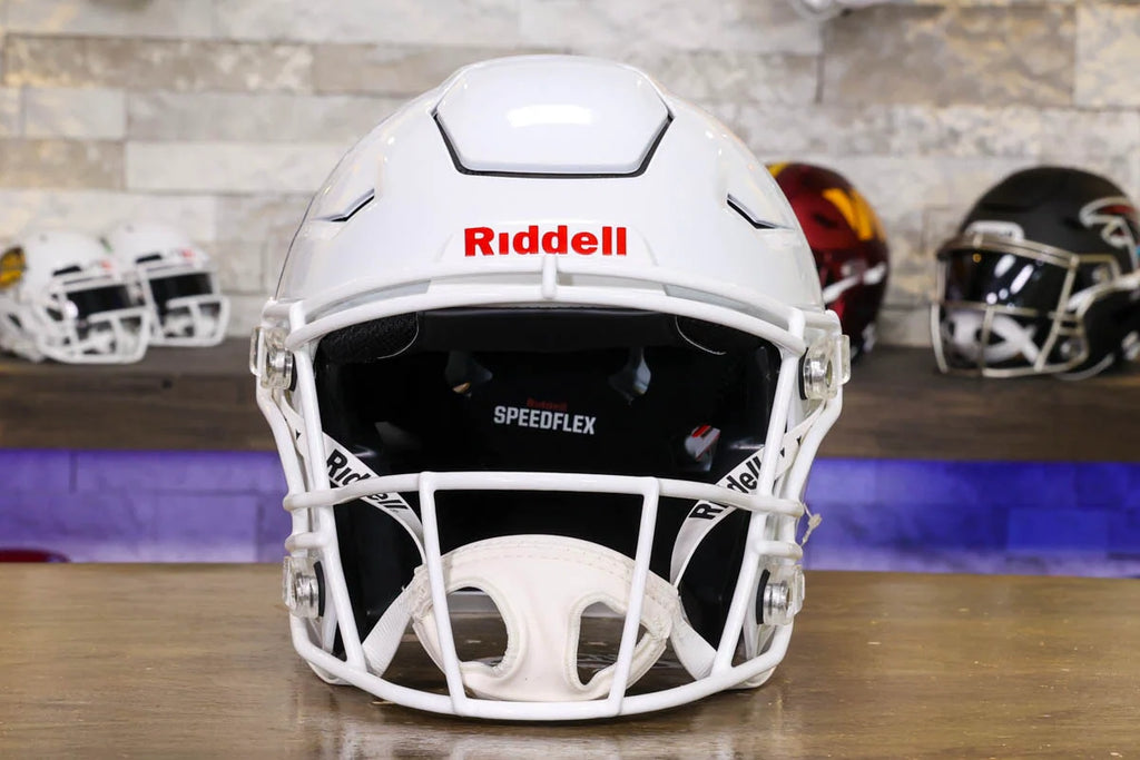 The Riddell SpeedFlex Helmet is one of the most popular and iconic styles in history and one of the most sought after by players and collectors! These officially licensed helmets are perfect for display, collecting autographs, and showing off your team spirit. We recommend your helmet be displayed prominently on a shelf or on the wall with a Helmet Hanger, the same way we and many teams do! Available in any of the same 35+ colors we offer for facemasks, each hanger is coated to order.