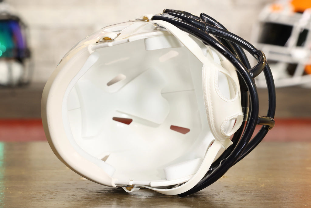 The Riddell Speed Mini Helmets are an easy and affordable way to join the collectors club and they make a perfect gift that everyone loves without breaking the bank! Riddell mini helmets are about half the size of the Authentic and Replica helmets. They model the official team designs and colors on a smaller scale. Coming in at about 6” tall, you can collect all your teams’ mini’s without taking up much room. Put them on your desk, a shelf, your dashboard, or get a Mini Helmet Hanger and put them on the wall!
