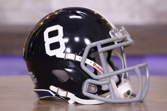 Mini Helmets are an easy and affordable way to join the collectors club and they make a perfect gift that everyone loves without breaking the bank! Mini helmets are about half the size of the Authentic and Replica helmets. They model the official team designs and colors on a smaller scale. Coming in at about 6” tall, you can collect all your teams’ mini’s without taking up much room. Put them on your desk, a shelf, your dashboard, or get a Mini Helmet Hanger and put them on the wall!