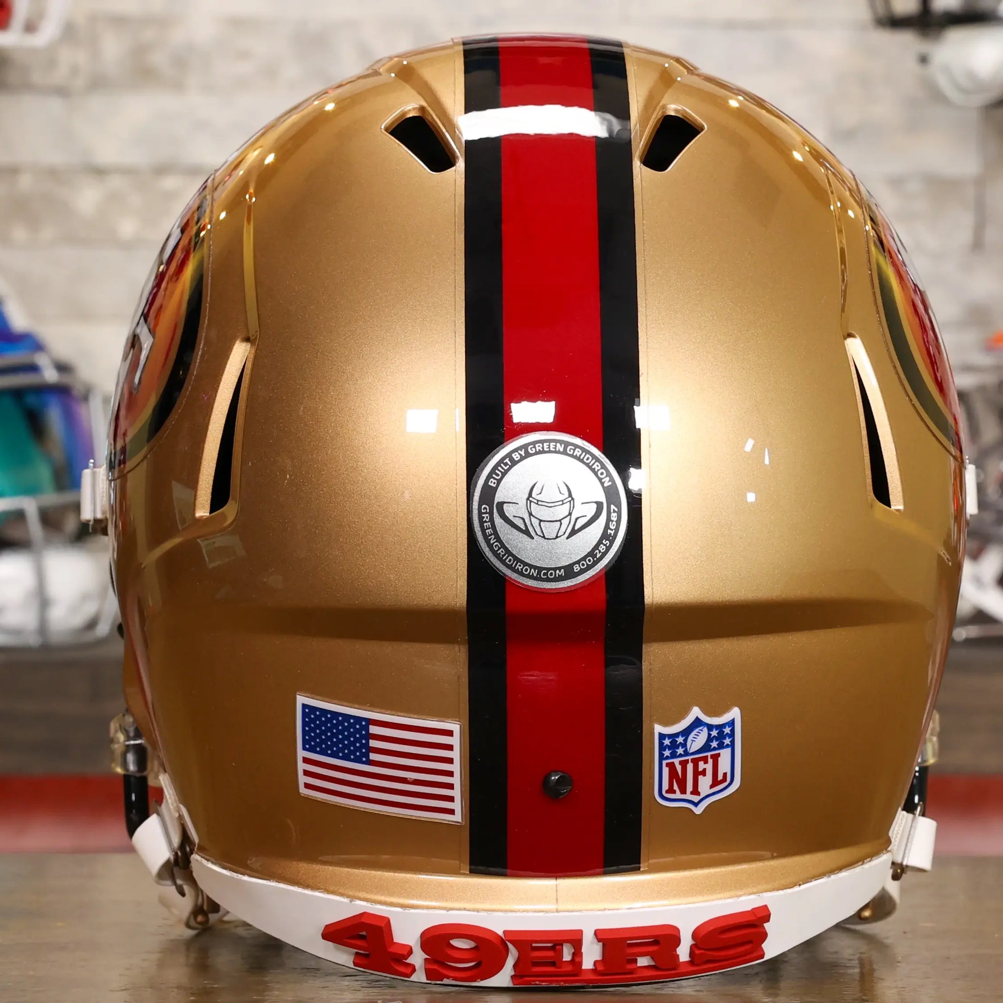 This San Francisco 49ers Helmet is a Green Gridiron masterpiece, ready for the biggest 49ers fan!