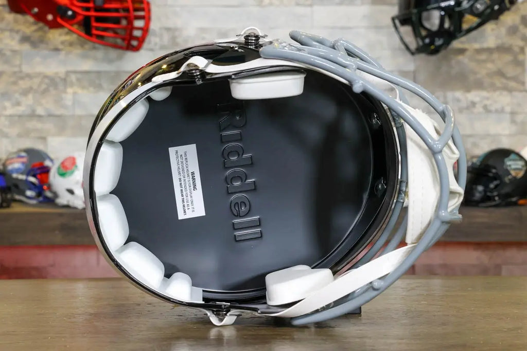 The Riddell Speed Mini Helmets are an easy and affordable way to join the collectors club and they make a perfect gift that everyone loves without breaking the bank! Riddell mini helmets are about half the size of the Authentic and Replica helmets. They model the official team designs and colors on a smaller scale. Coming in at about 6” tall, you can collect all your teams’ mini’s without taking up much room. Put them on your desk, a shelf, your dashboard, or get a Mini Helmet Hanger and put them on the wall!