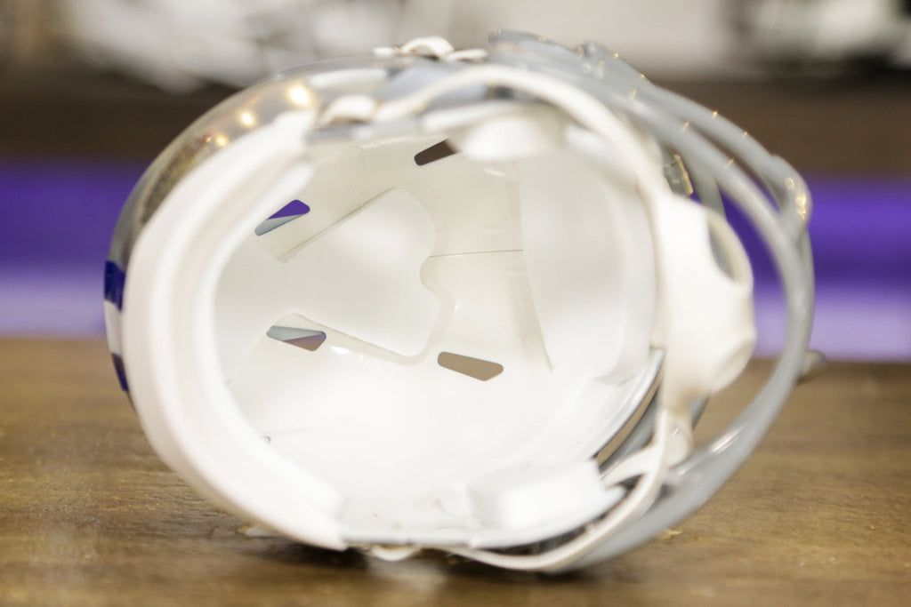 The Riddell Speed Mini Helmets are an easy and affordable way to join the collectors club and they make a perfect gift that everyone loves without breaking the bank! Riddell mini helmets are about half the size of the Authentic and Replica helmets. They model the official team designs and colors on a smaller scale. Coming in at about 6” tall, you can collect all your teams’ mini’s without taking up much room. Put them on your desk, a shelf, your dashboard, or get a Mini Helmet Hanger and put them on the wall!