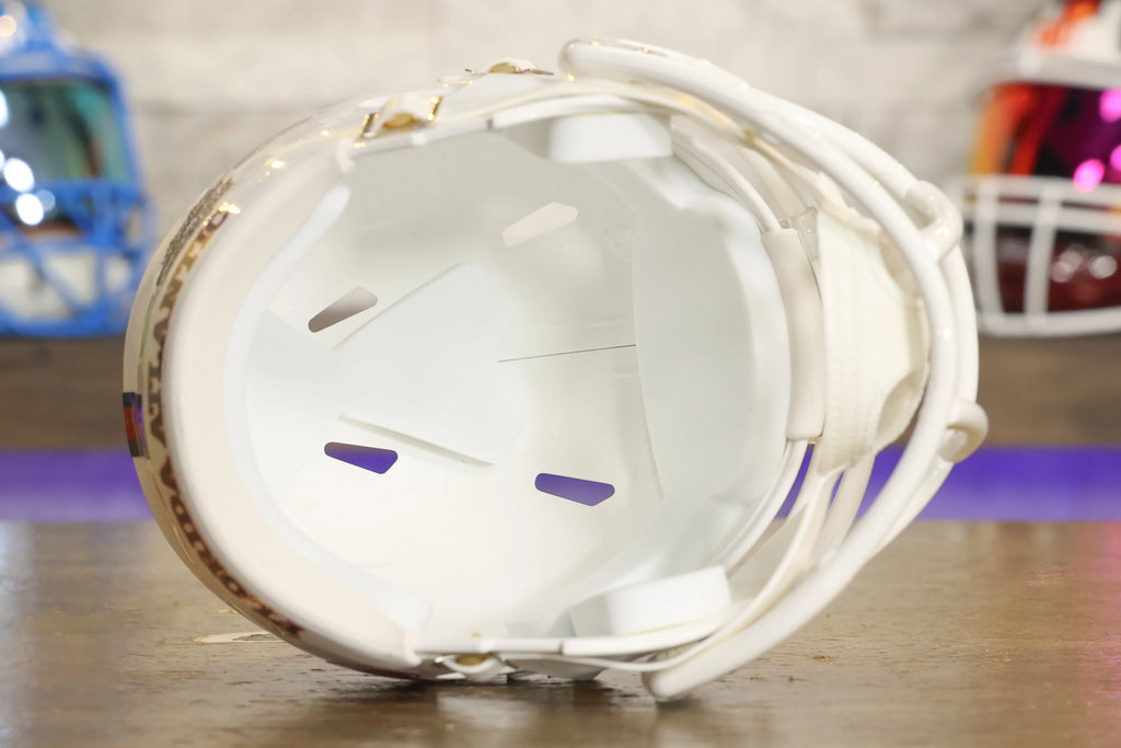Mini Helmets are an easy and affordable way to join the collectors club and they make a perfect gift that everyone loves without breaking the bank! Mini helmets are about half the size of the Authentic and Replica helmets. They model the official team designs and colors on a smaller scale. Coming in at about 6” tall, you can collect all your teams’ mini’s without taking up much room. Put them on your desk, a shelf, your dashboard, or get a Mini Helmet Hanger and put them on the wall!