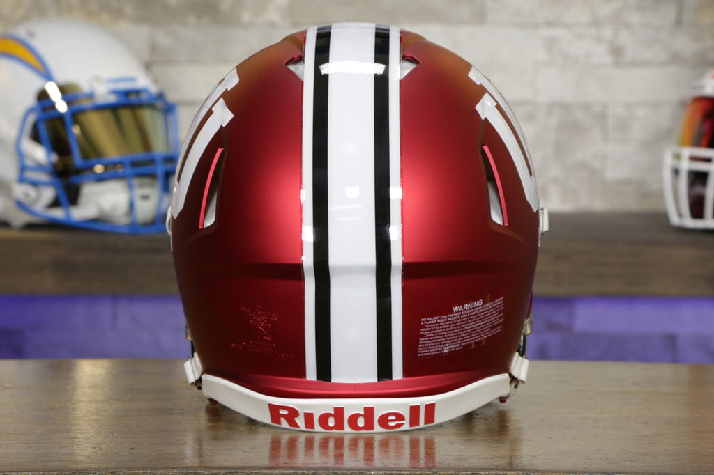 The Riddell Speed helmet is one of the most popular and iconic styles in history and one of the most sought after by collectors! These officially licensed helmets are perfect for display, collecting autographs, and showing off your team spirit. We recommend your helmet be displayed prominently on a shelf or on the wall with a Helmet Hanger, the same way we and many teams do! Available in any of the same 35+ colors we offer for facemasks, each hanger is coated to order.