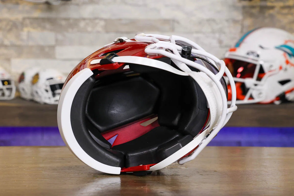 Oklahoma Sooners SpeedFlex Mid-Size Football Helmet – A must-have collectible for Sooners fans and autograph seekers. This officially licensed mid-size helmet features the iconic SpeedFlex shell, SF-2BD-SW face mask, authentic team decals, internal padding, soft-cup chinstrap, and a clear visor. Sized between a replica and a mini helmet, it’s ideal for display, signing events, or gifting. Affordable, detailed, and game-inspired—perfect for any fan cave or collection.
