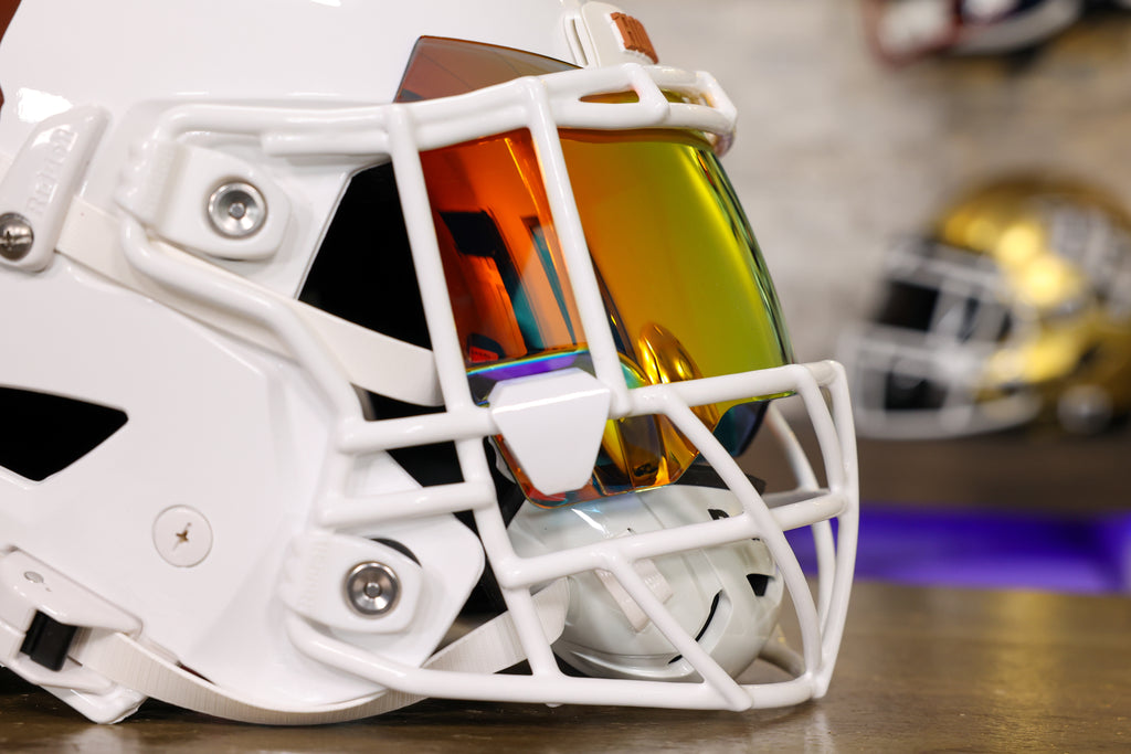 Green Gridiron Edition Custom Helmets are builds made by our GG team. Their vision is brought to life, beautifully designed, and carefully assembled. This helmet is sold in its present condition, parts cannot be exchanged, added or removed. If you want a different upgrade, you must purchase it separately. If you do not want any of the components included in this build, the price will not lower and the piece(s) will not be removed. This helmet is sold as is. If you want a premium upgraded helmet without putting in the work yourself, trust the brainpower of Green Gridiron and take home a ready-made, custom helmet!