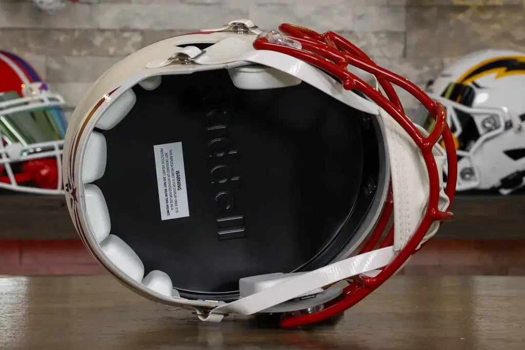 WHAT YOU GET: Since its introduction, the Riddell Speed was a top choice for players at all levels. With never before seen aggressive lines, comfortable fit, and plethora of upgrades, the Riddell Speed remains one of the most popular helmets with players and collectors alike. At approximately 10” tall, this officially licensed display helmet is perfect for all football fans and great for autographs. Sized slightly smaller than the Speed Authentic, it comes with the same S2BD-SW-SP facemask, 4-point soft chinstrap, and official paint and decals as it's bigger brother.