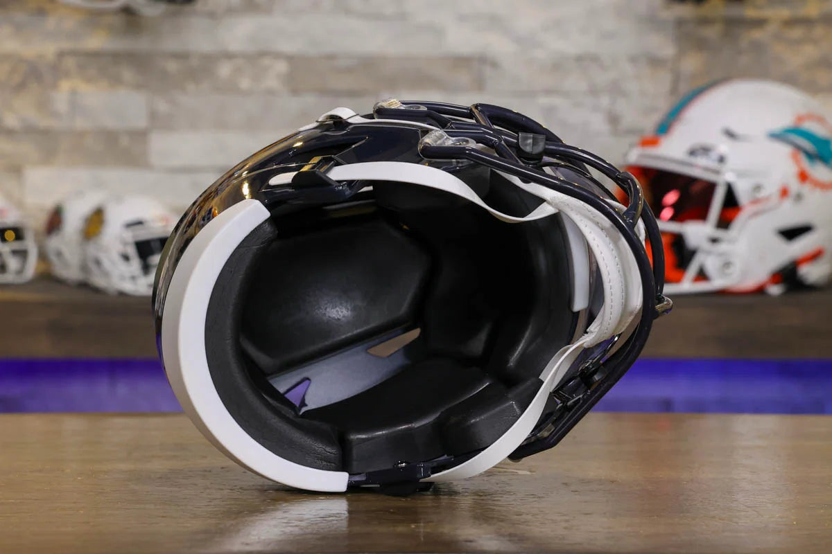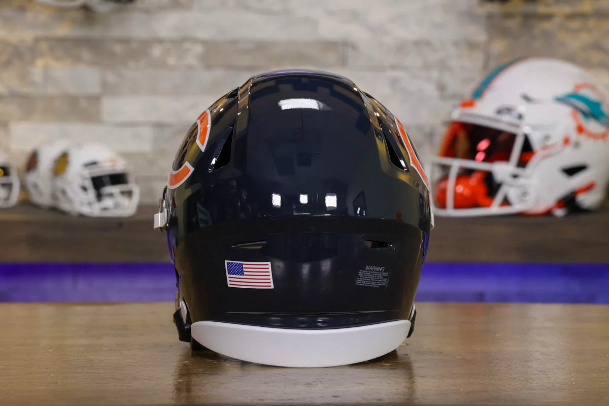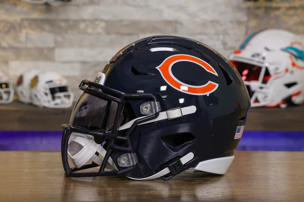 Chicago Bears SpeedFlex Mid-Size Football Helmet – A must-have collectible for Bears fans and autograph seekers. This officially licensed mid-size helmet features the iconic SpeedFlex shell, SF-2BD-SW face mask, authentic team decals, internal padding, soft-cup chinstrap, and a clear visor. Sized between a replica and a mini helmet, it’s ideal for display, signing events, or gifting. Affordable, detailed, and game-inspired—perfect for any fan cave or collection.
