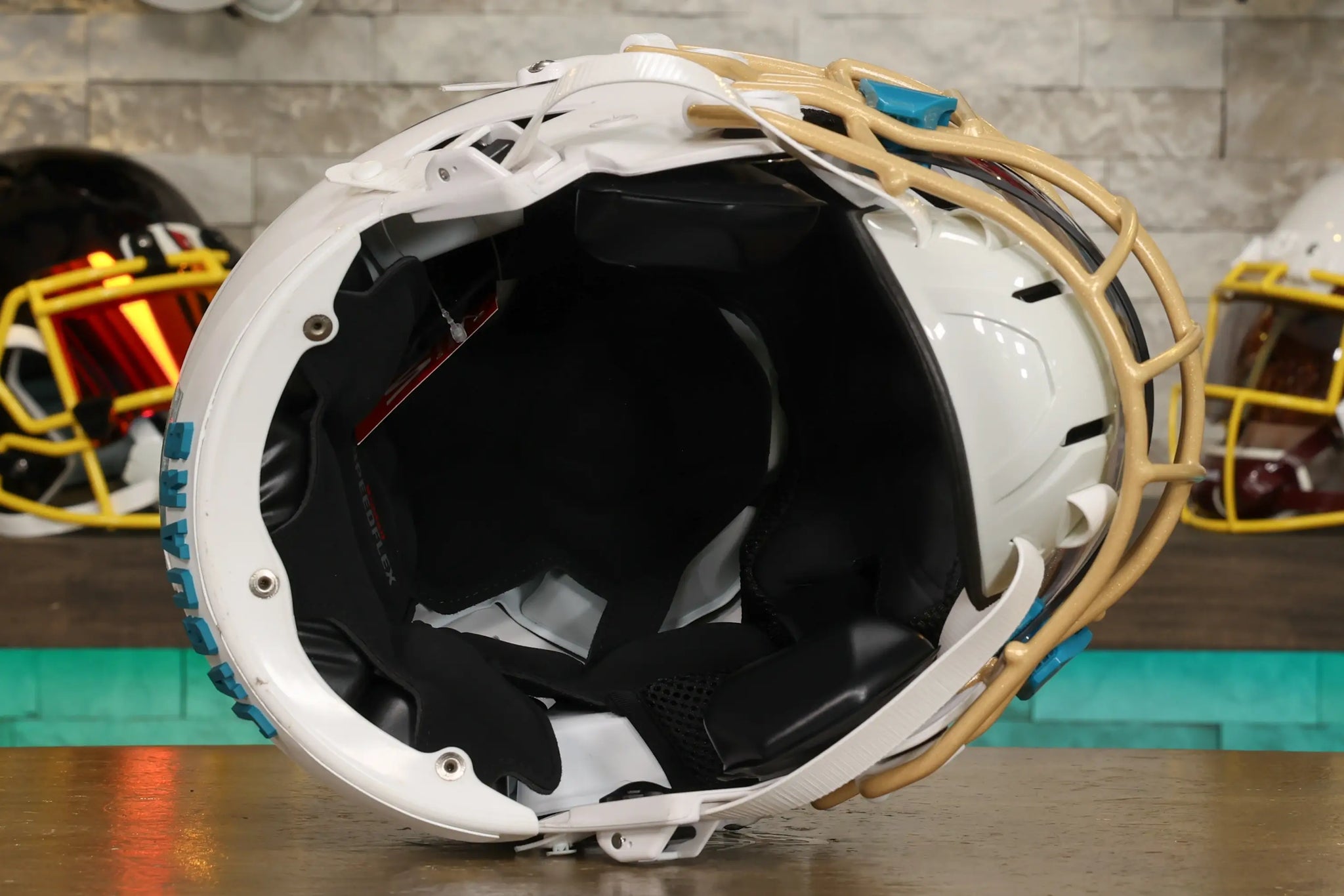 Green Gridiron Edition Custom Helmets are builds made by our GG team. Their vision is brought to life, beautifully designed, and carefully assembled. This helmet is sold in its present condition, parts cannot be exchanged, added or removed. If you want a different upgrade, you must purchase it separately. If you do not want any of the components included in this build, the price will not lower and the piece(s) will not be removed. This helmet is sold as is. If you want a premium upgraded helmet without putting in the work yourself, trust the brainpower of Green Gridiron and take home a ready-made, custom helmet!
