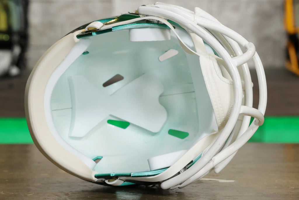 The Riddell Speed Mini Helmets are an easy and affordable way to join the collectors club and they make a perfect gift that everyone loves without breaking the bank! Riddell mini helmets are about half the size of the Authentic and Replica helmets. They model the official team designs and colors on a smaller scale. Coming in at about 6” tall, you can collect all your teams’ mini’s without taking up much room. Put them on your desk, a shelf, your dashboard, or get a Mini Helmet Hanger and put them on the wall!