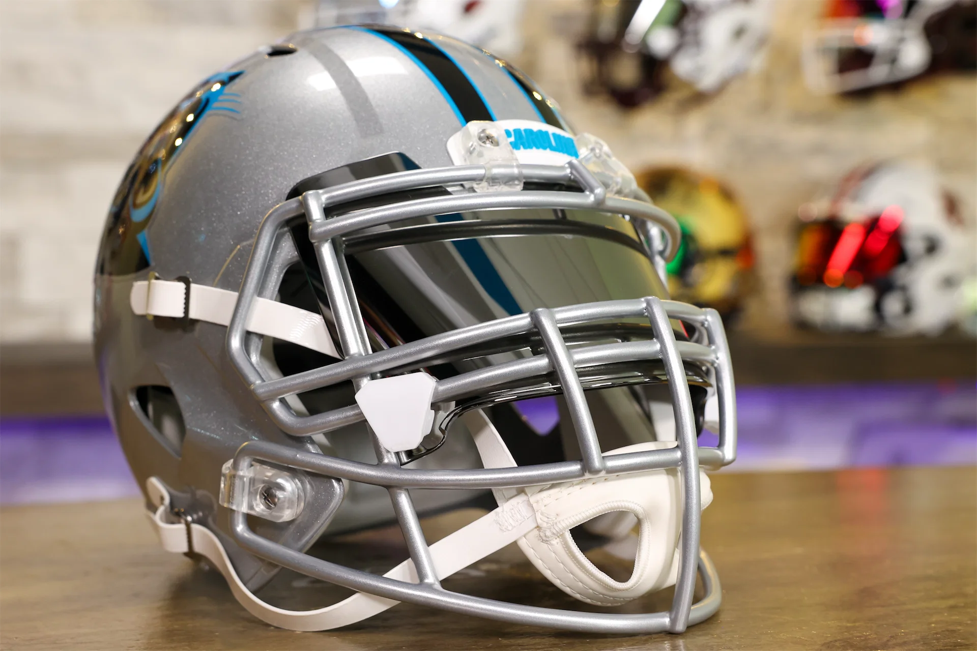 This Carolina Panthers Helmet is a Green Gridiron masterpiece, ready for the biggest Panthers fan!
