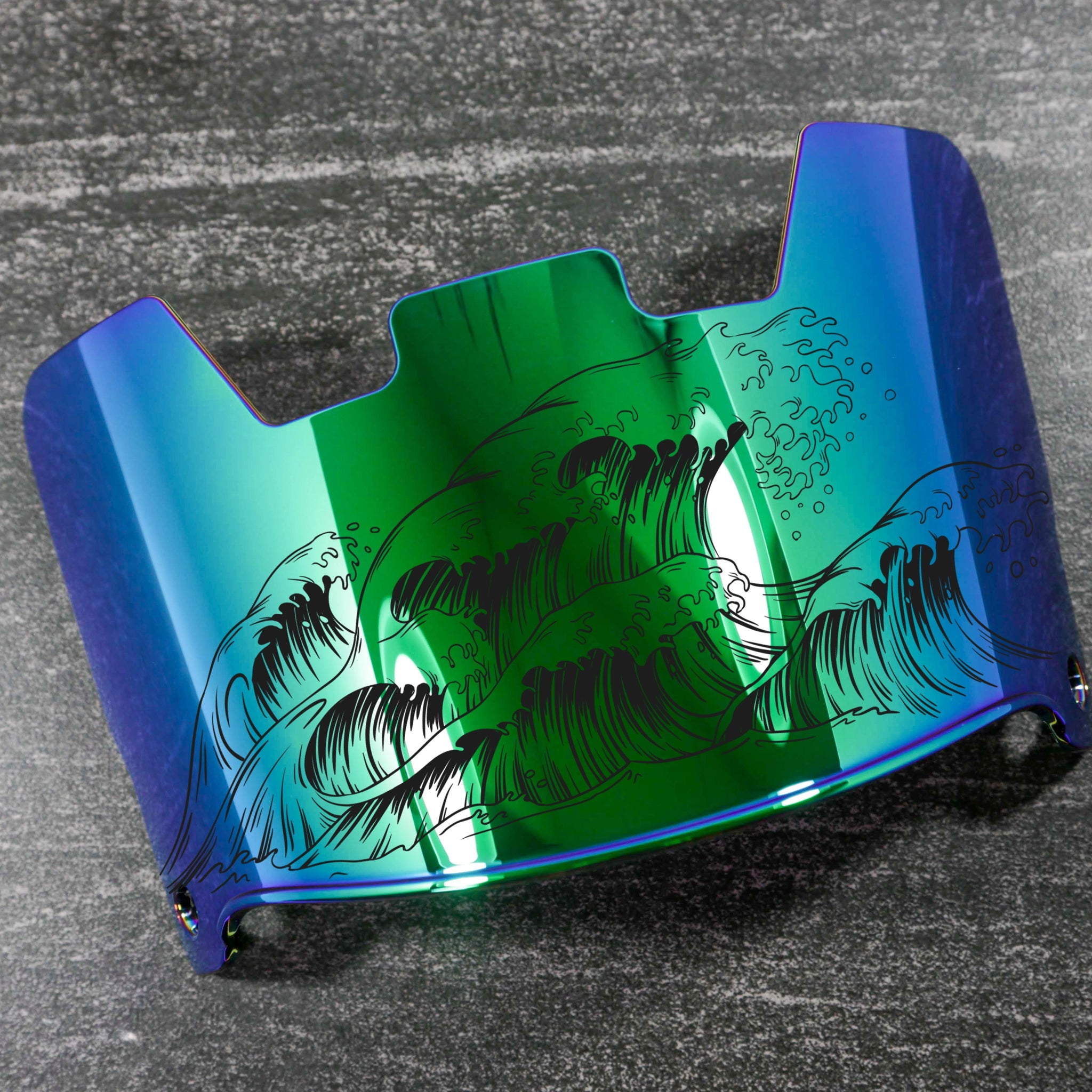 Break out of the ordinary with these Designer Etched Visors! Show off a fun design that reflects your team or personality and make a statement. These visors are great for photoshoots, recruiting, and for display helmets. Visors provide a universal fit on most facemasks and helmet combinations.