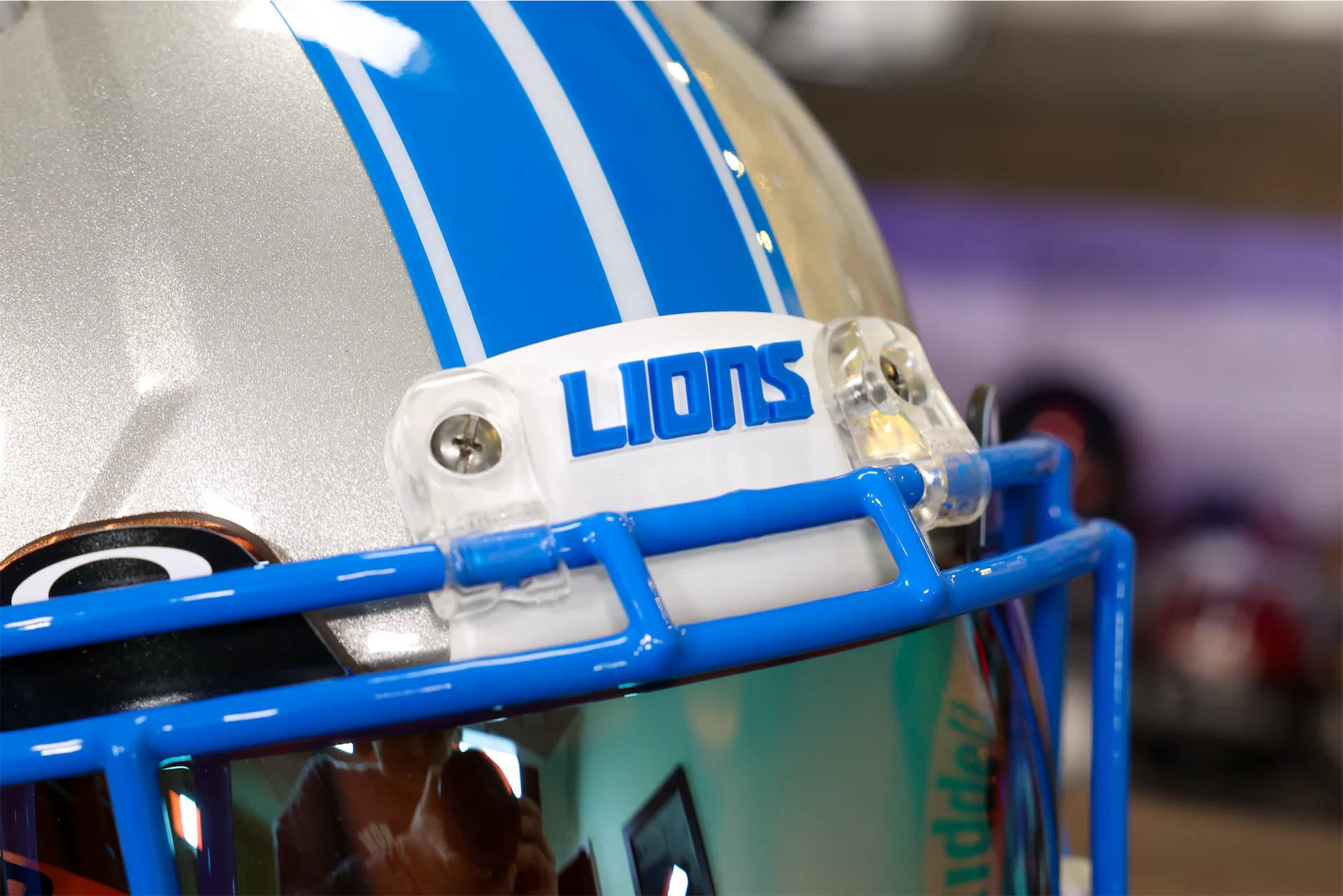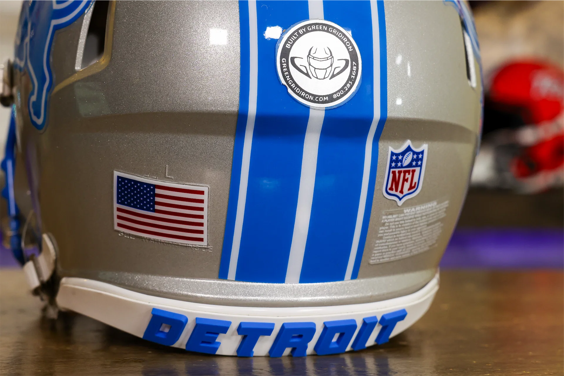 This Detroit Lions Helmet is a Green Gridiron masterpiece, ready for the biggest Lions fan!