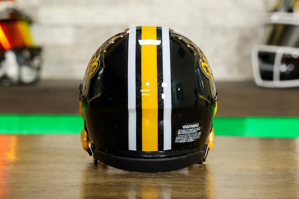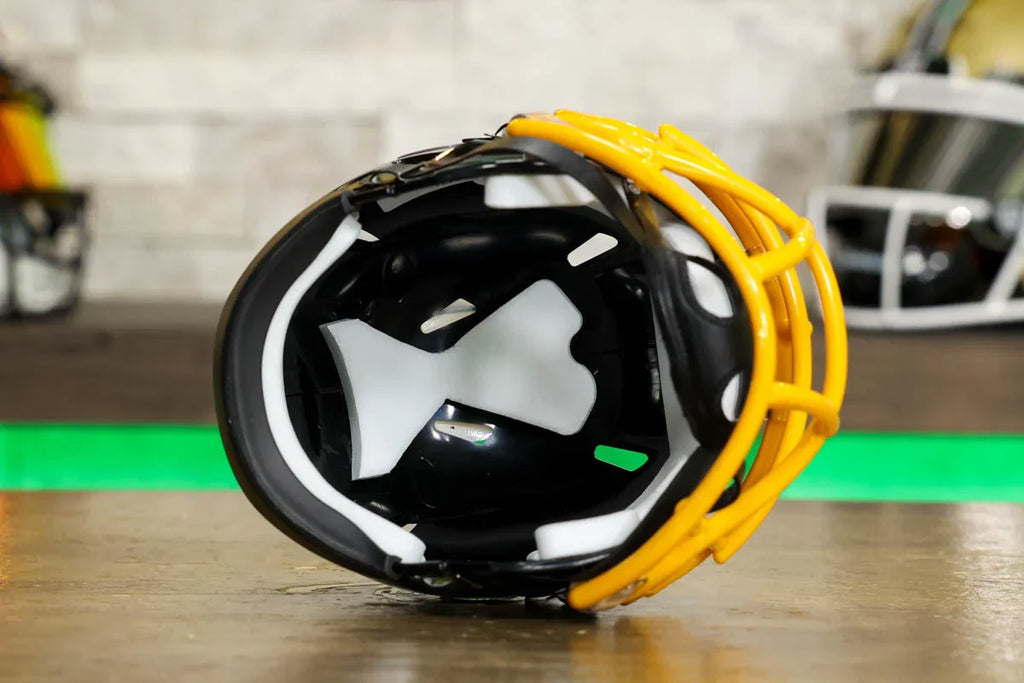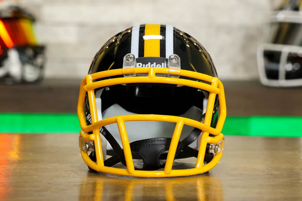 The Riddell Speed Mini Helmets are an easy and affordable way to join the collectors club and they make a perfect gift that everyone loves without breaking the bank! Riddell mini helmets are about half the size of the Authentic and Replica helmets. They model the official team designs and colors on a smaller scale. Coming in at about 6” tall, you can collect all your teams’ mini’s without taking up much room. Put them on your desk, a shelf, your dashboard, or get a Mini Helmet Hanger and put them on the wall!