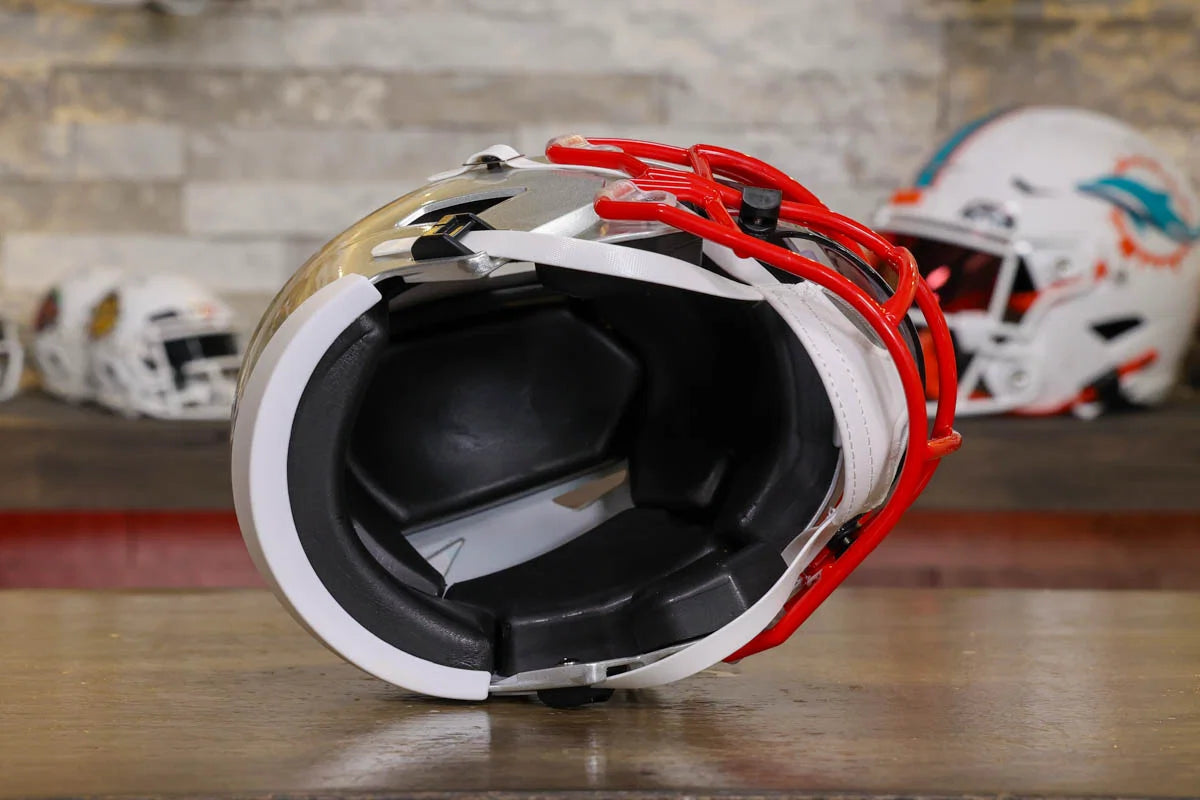 New Englad Patriots SpeedFlex Mid-Size Football Helmet – A must-have collectible for Patriots fans and autograph seekers. This officially licensed mid-size helmet features the iconic SpeedFlex shell, SF-2BD-SW face mask, authentic team decals, internal padding, soft-cup chinstrap, and a clear visor. Sized between a replica and a mini helmet, it’s ideal for display, signing events, or gifting. Affordable, detailed, and game-inspired—perfect for any fan cave or collection.