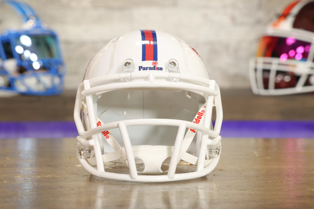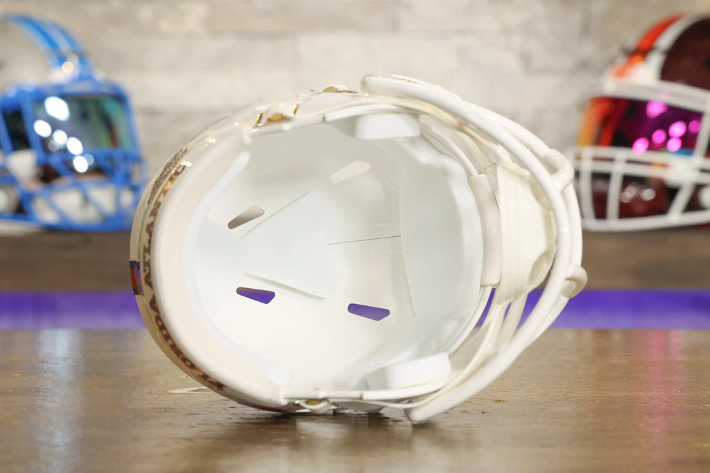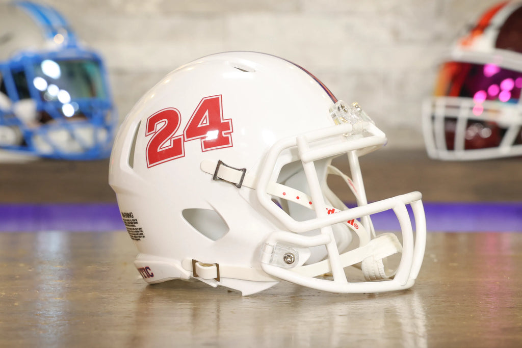 Mini Helmets are an easy and affordable way to join the collectors club and they make a perfect gift that everyone loves without breaking the bank! Mini helmets are about half the size of the Authentic and Replica helmets. They model the official team designs and colors on a smaller scale. Coming in at about 6” tall, you can collect all your teams’ mini’s without taking up much room. Put them on your desk, a shelf, your dashboard, or get a Mini Helmet Hanger and put them on the wall!